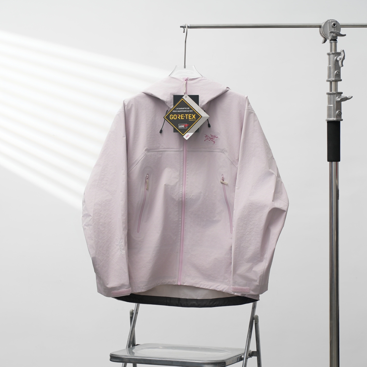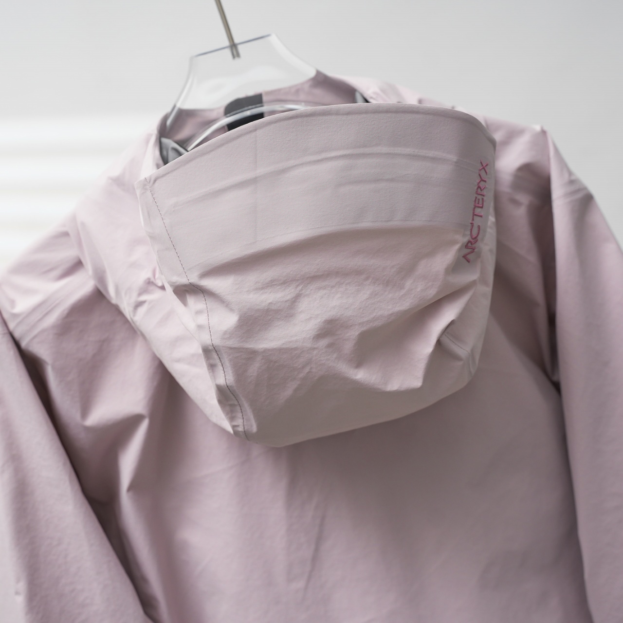 Arc'teryx Bate SL lightweight breathable hooded jacket in mist pink. Sizes S-XXL.