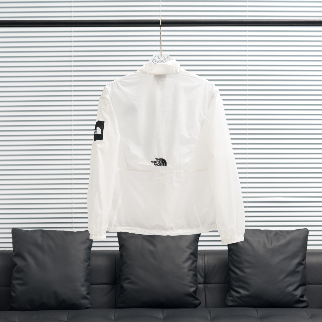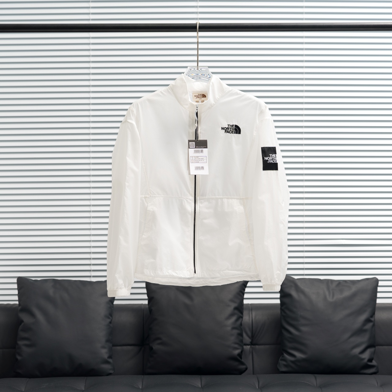 Factory direct TNF North Face Korean style solid color stand-up collar lightweight sun protection. Colors: White, Khaki, Light Blue. Sizes: S-XXL.