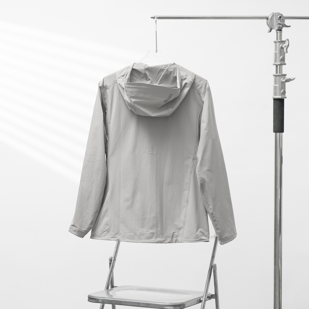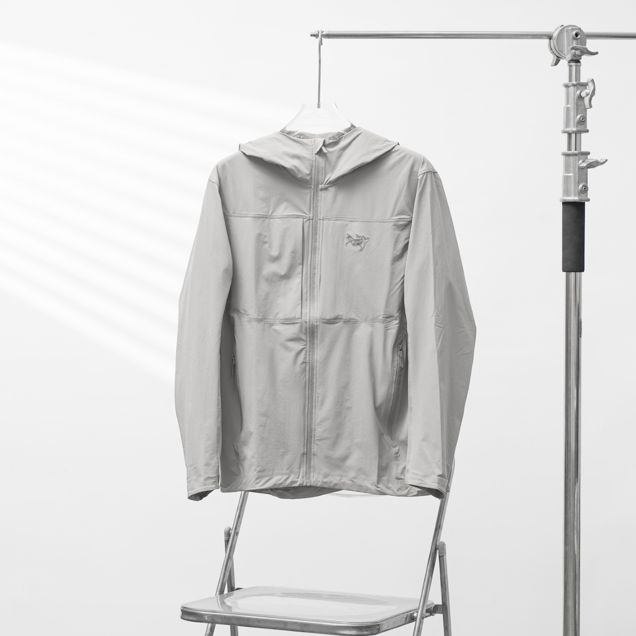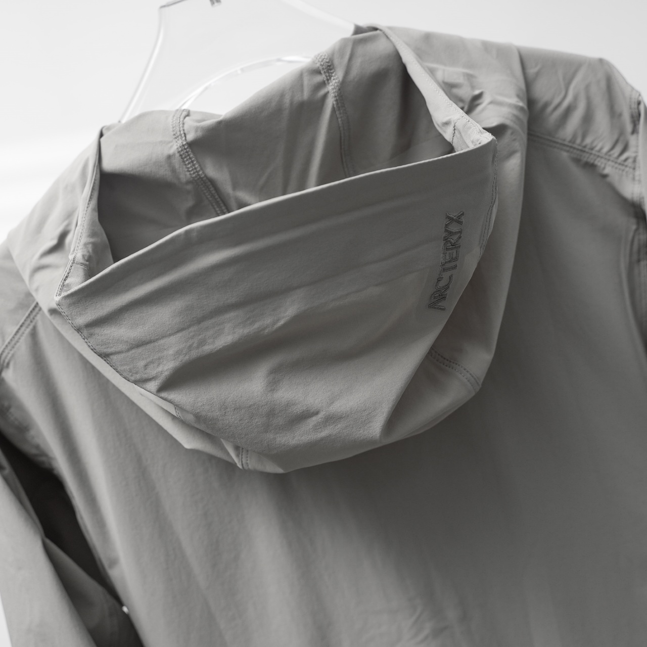 Factory direct Arc'teryx Gamma softshell lightweight hooded jacket in gray, sizes S-XXL.