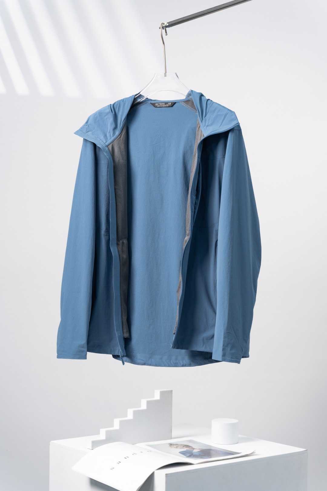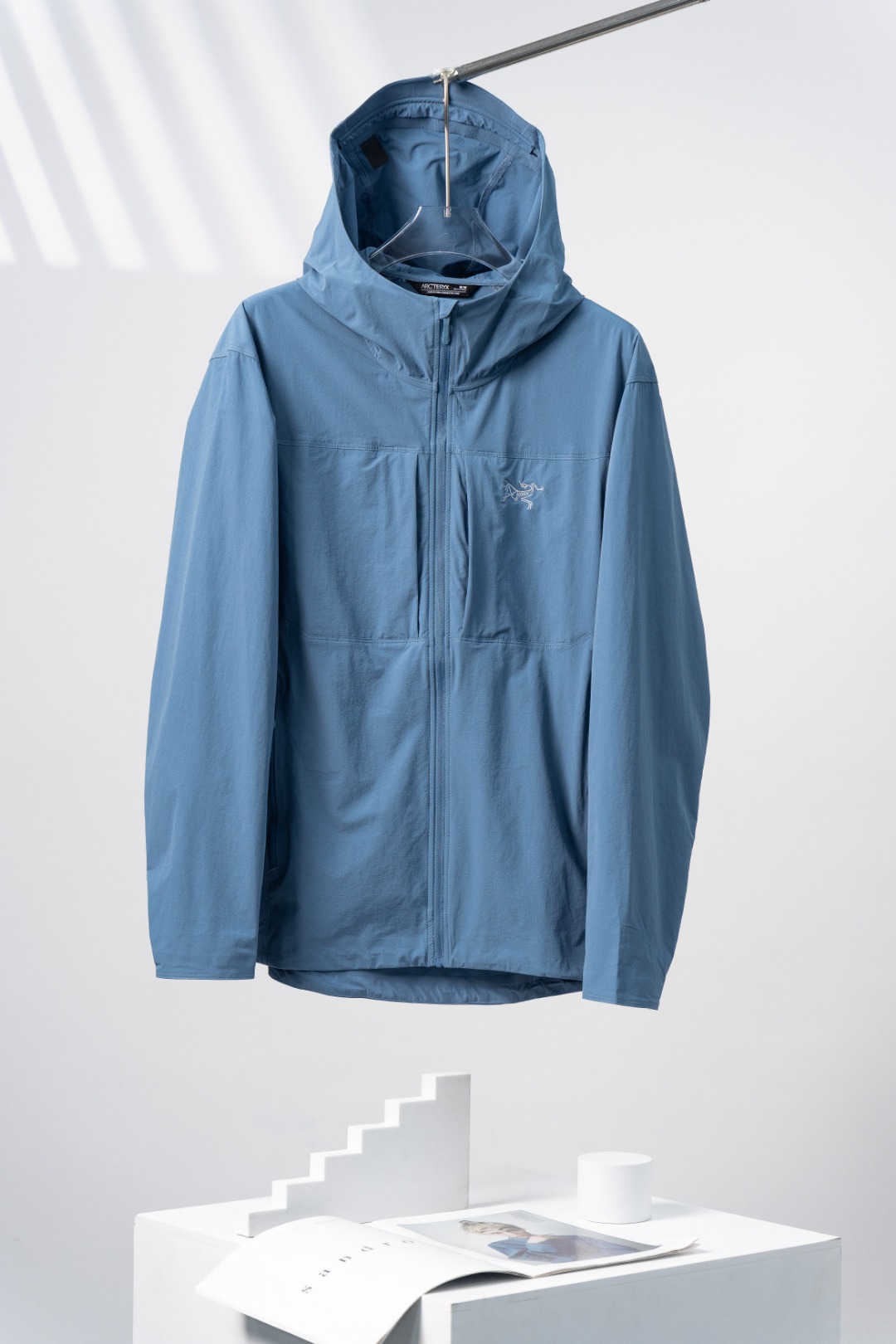 Arc'teryx Gamma Softshell Hoody: lightweight, breathable. Color: Stone Blue. Sizes: S-XXL.