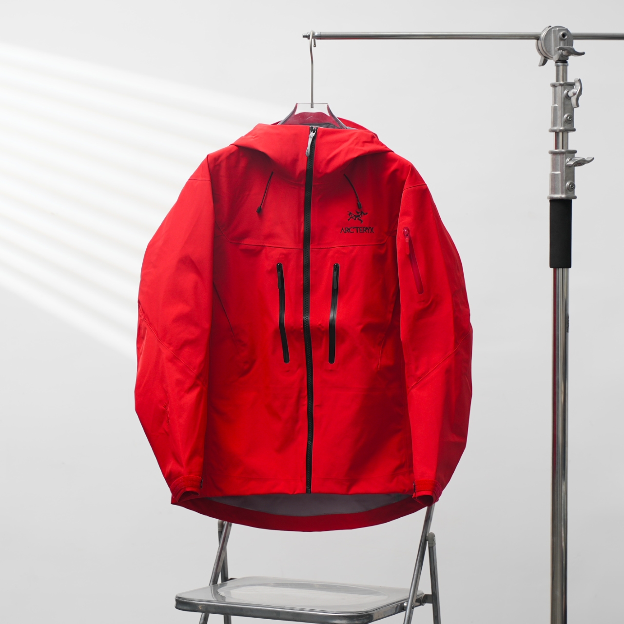 ARC'TERYX Alpha SV7 Hooded Jacket in Thrill Red, sizes S-XXL.