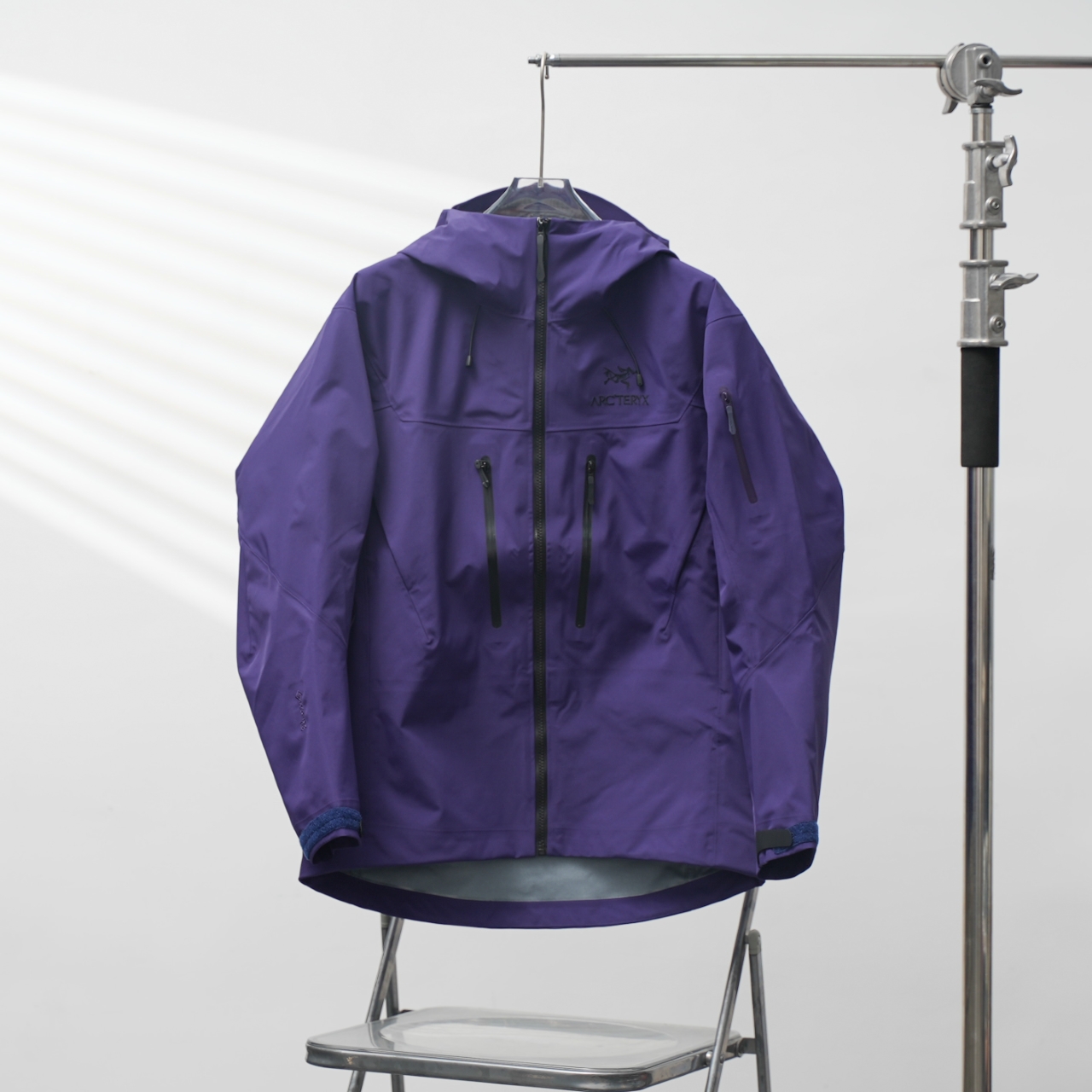 Factory direct Arc'teryx Alpha SV7 hooded jacket in Dynamic Purple, sizes S-XXL.