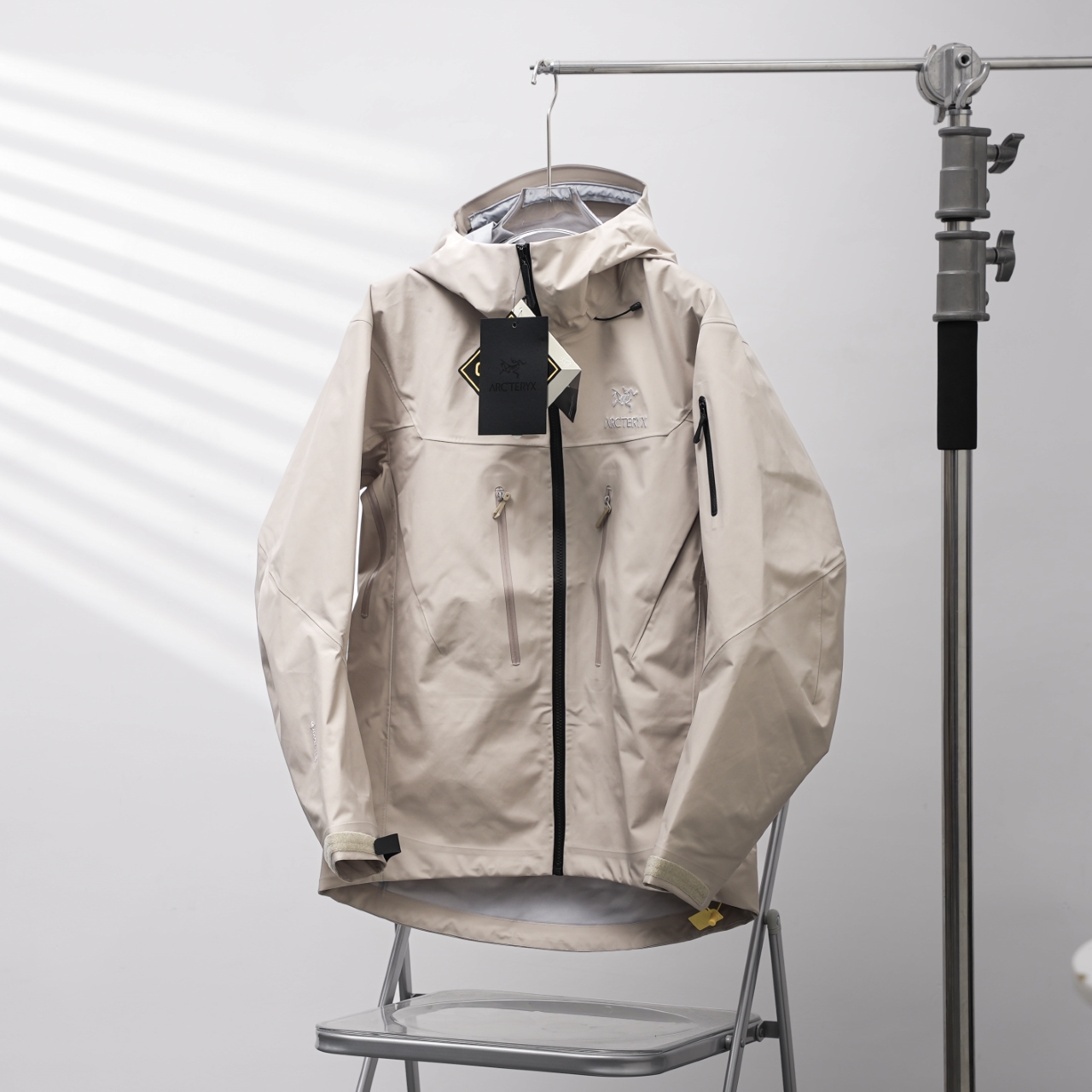 Factory direct ARC'TERYX Alpha SV7 hooded jacket in Misty Gray, sizes S-XXL.