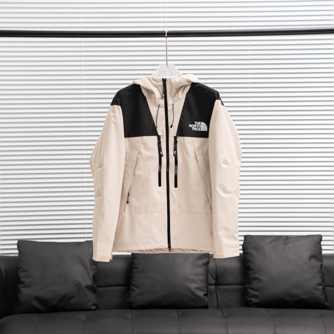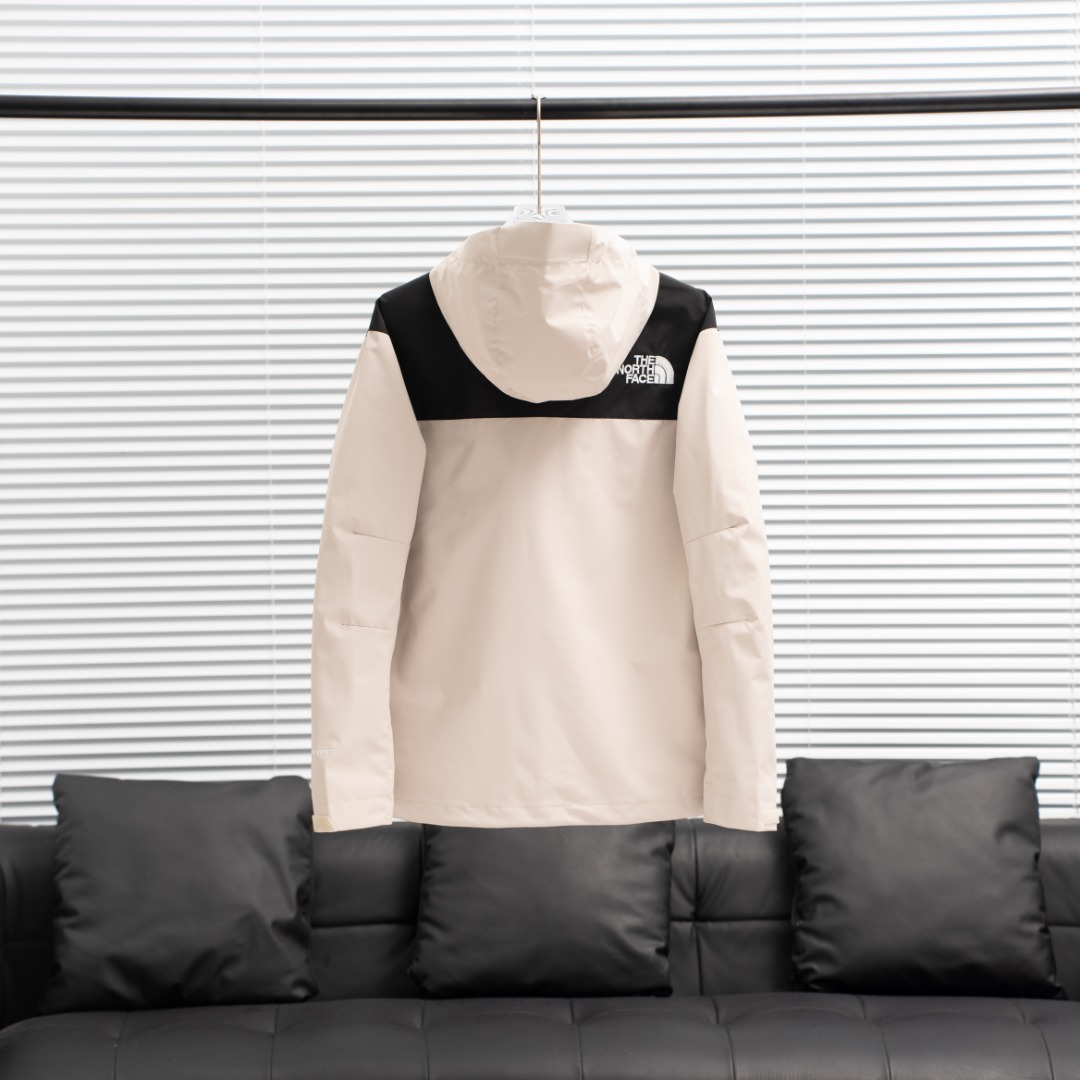 TNF North Face HQ01 double zipper embroidered hooded jacket. Colors: Black, Beige, Matcha, Graphite Gray, Klein Blue. Sizes: S-XXL.