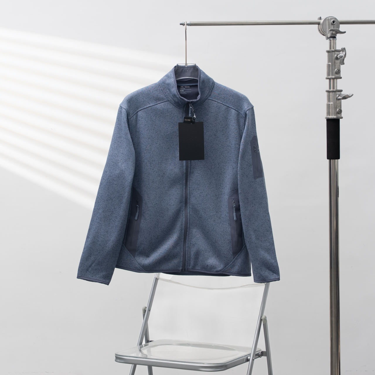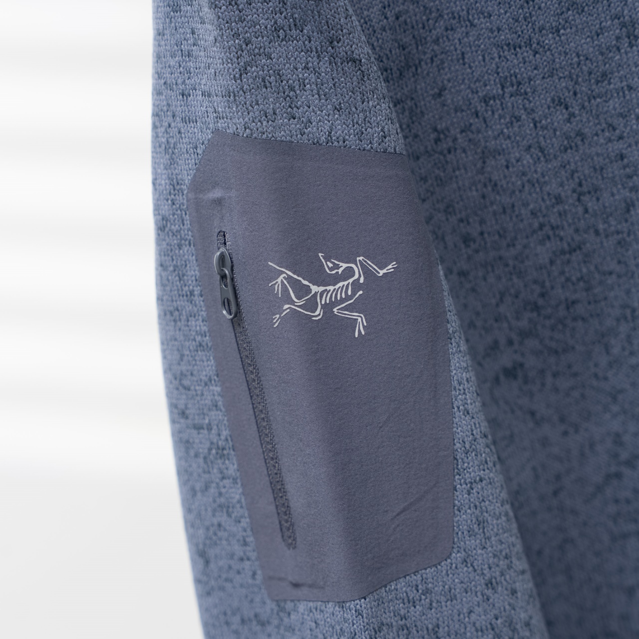 Factory direct Arc'teryx fleece jacket with printed logo. Color: Blue Gray. Sizes: S-3XL.