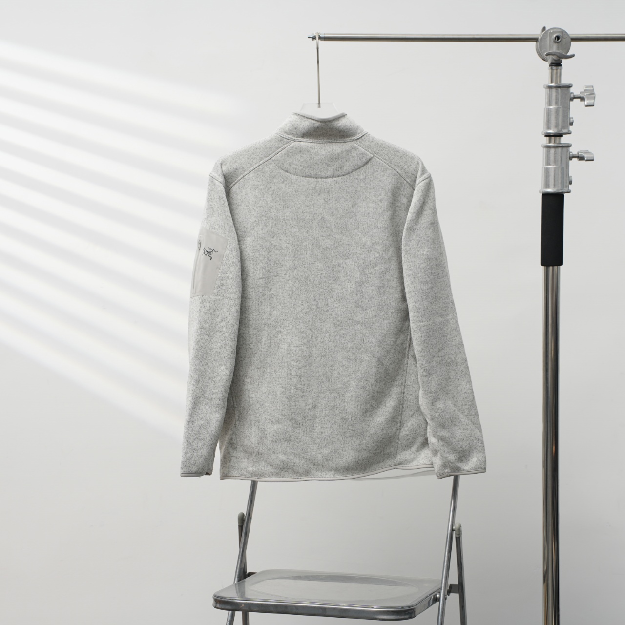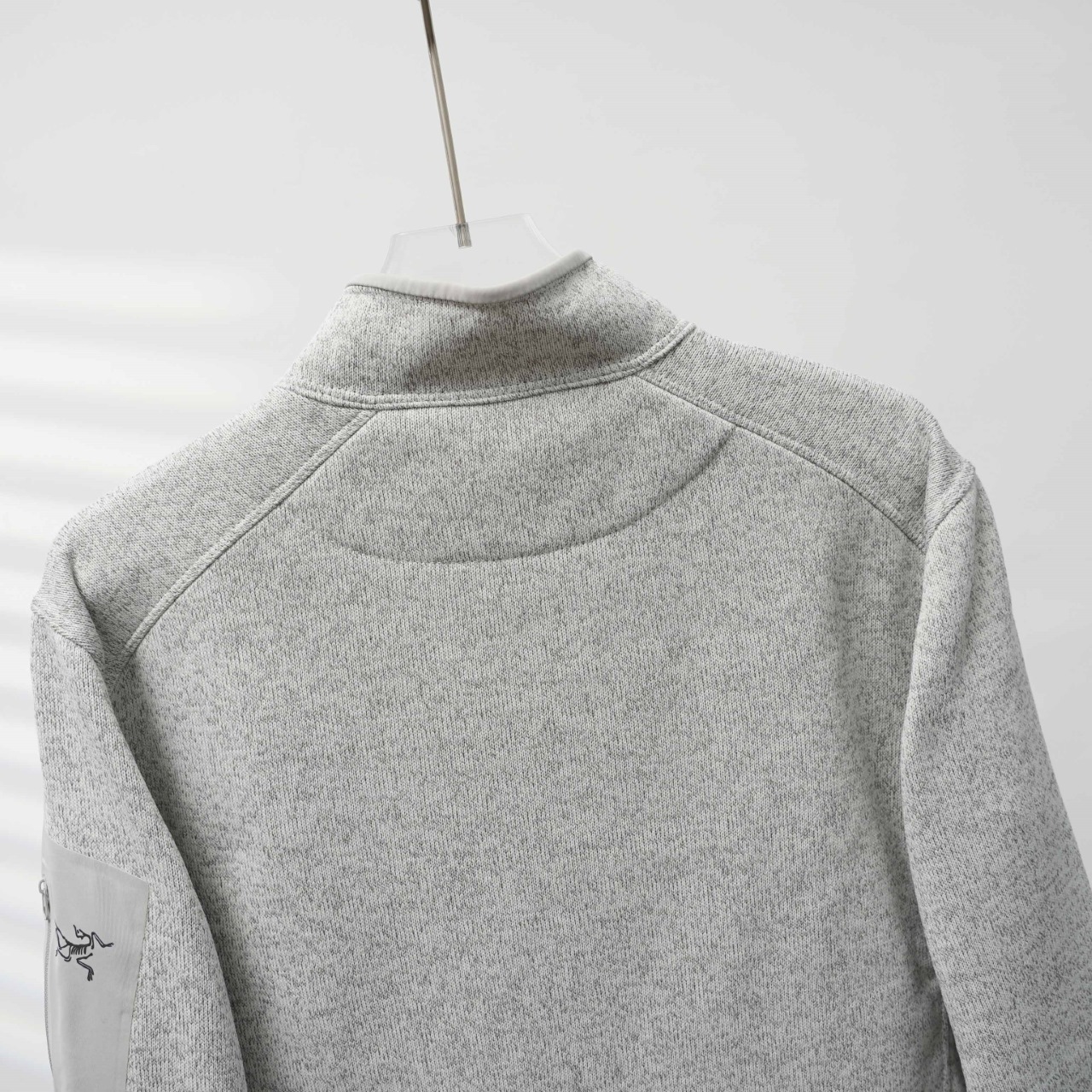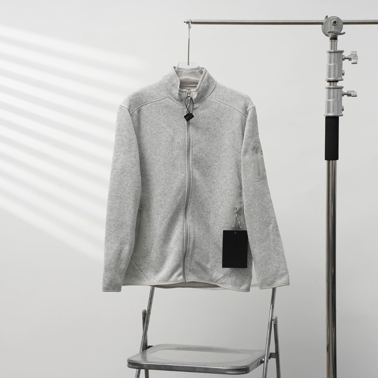 Factory direct Arc'teryx fleece jacket with printed logo. Color: Light Gray. Sizes: S-3XL.