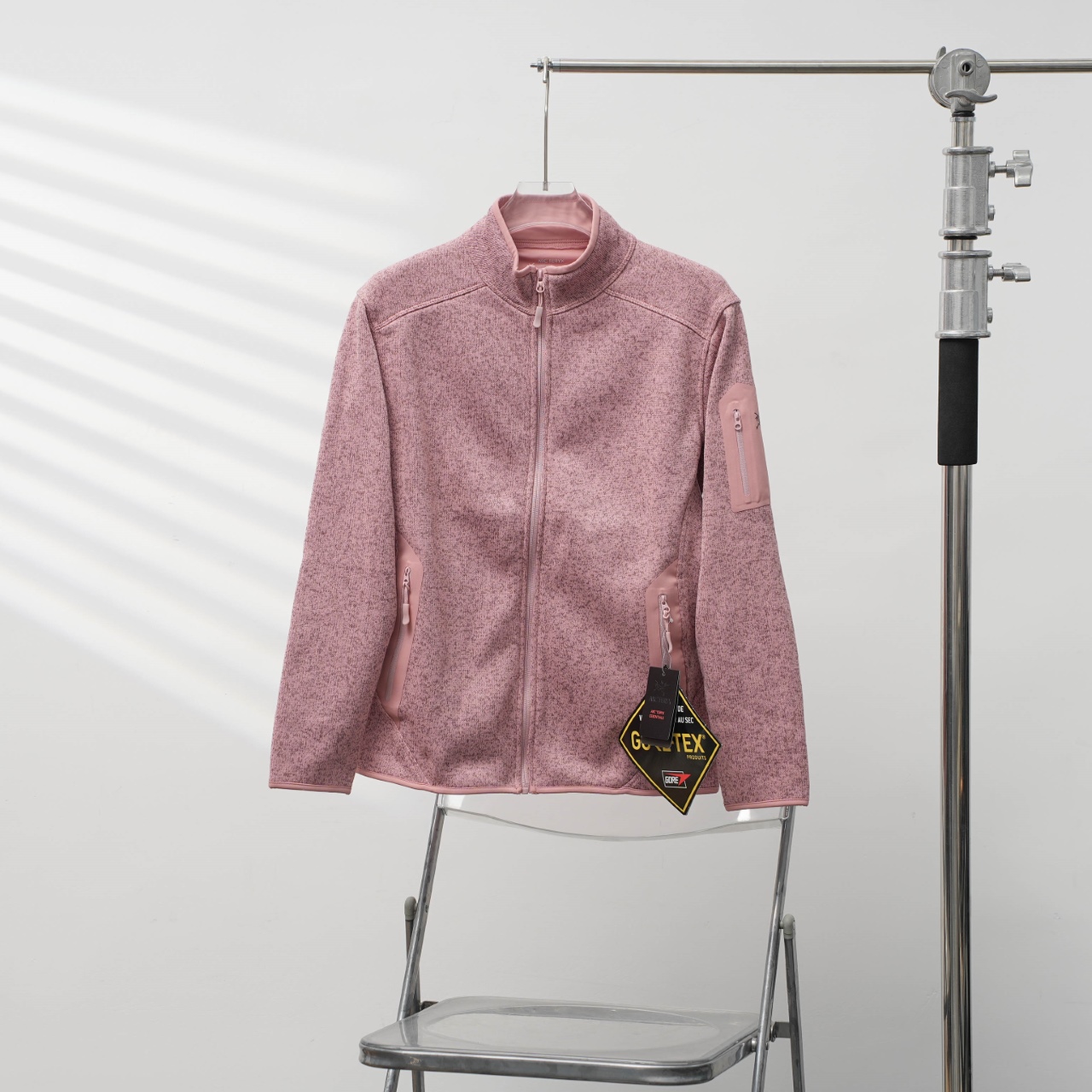 Factory direct Arc'teryx fleece jacket with printed logo. Color: Pink. Sizes: S-3XL.