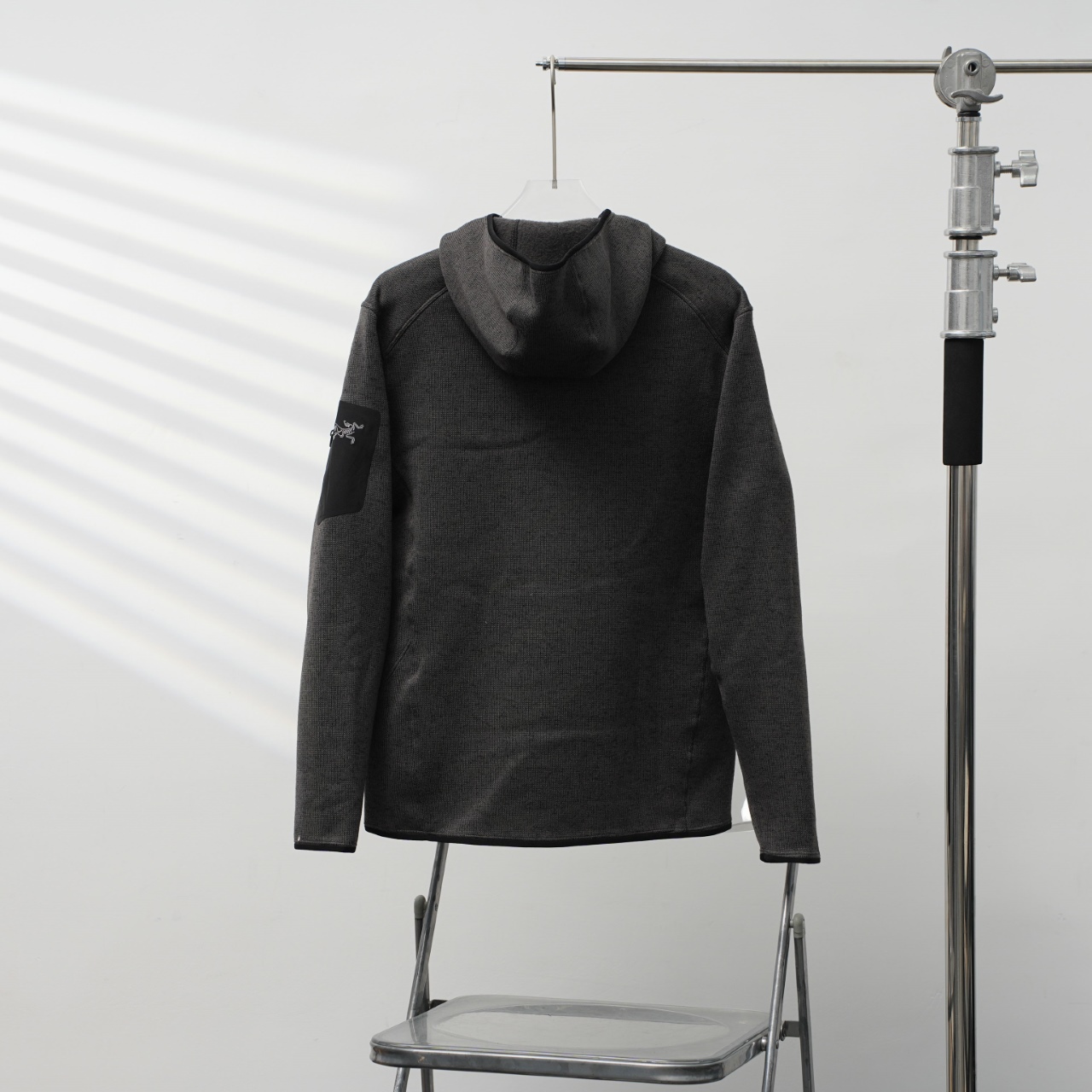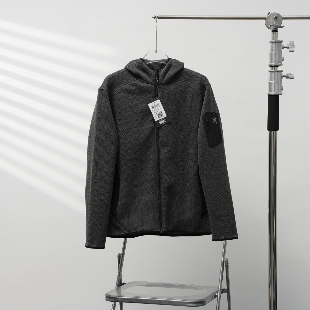 Factory direct Arc'teryx hooded fleece with embroidered logo. Colors: Dark Gray. Sizes: S-XXL.
