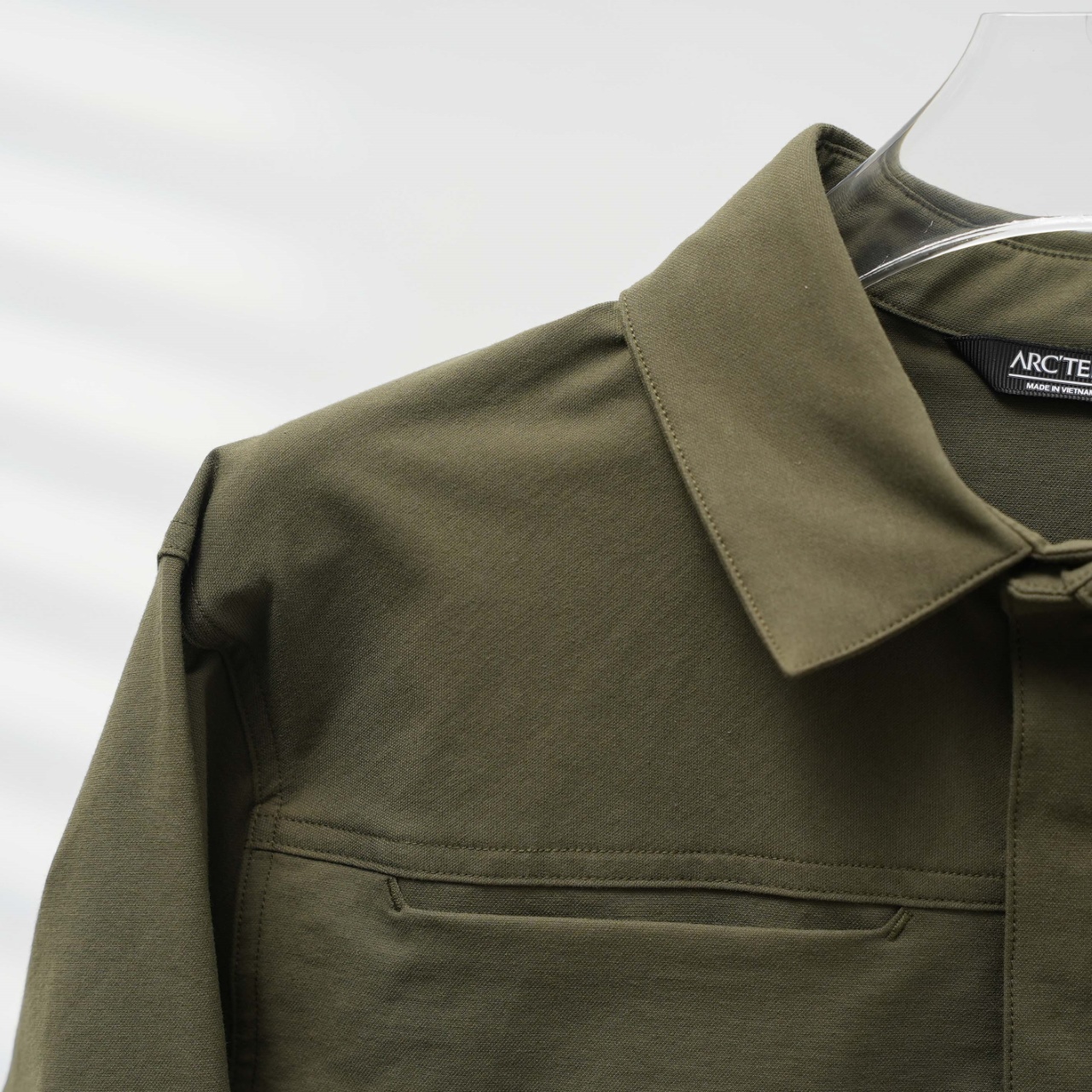 Factory direct Arc'teryx Cronin Cotton Overshirt, retro green, sizes XS-XXL.