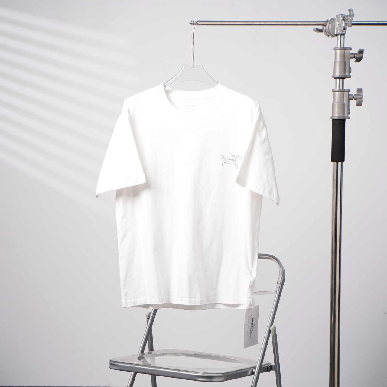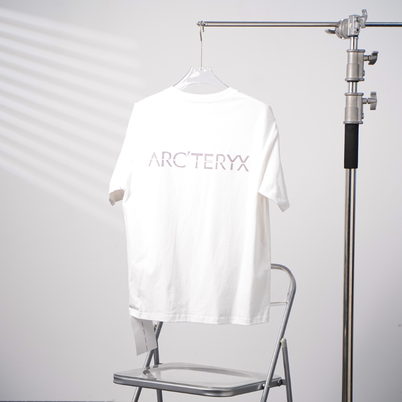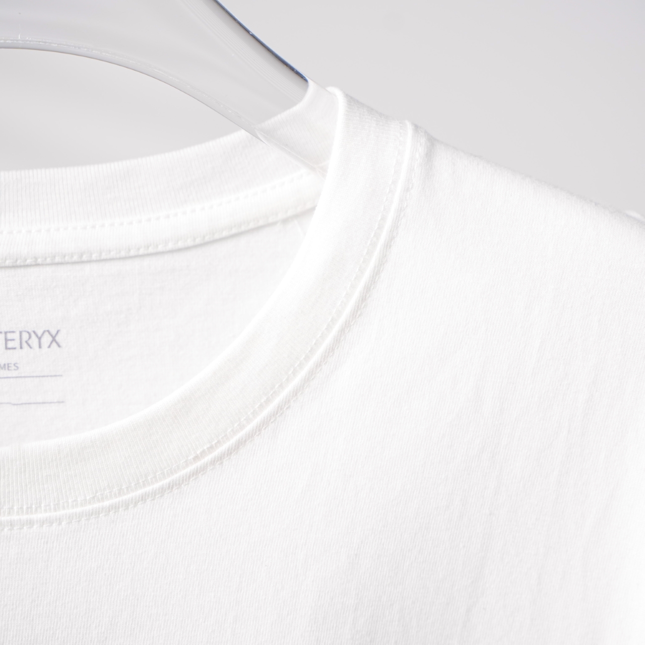 Factory direct Arc'teryx logo T-shirt. Sizes: M-3XL (240g), S-XXL (300g). Color: White.