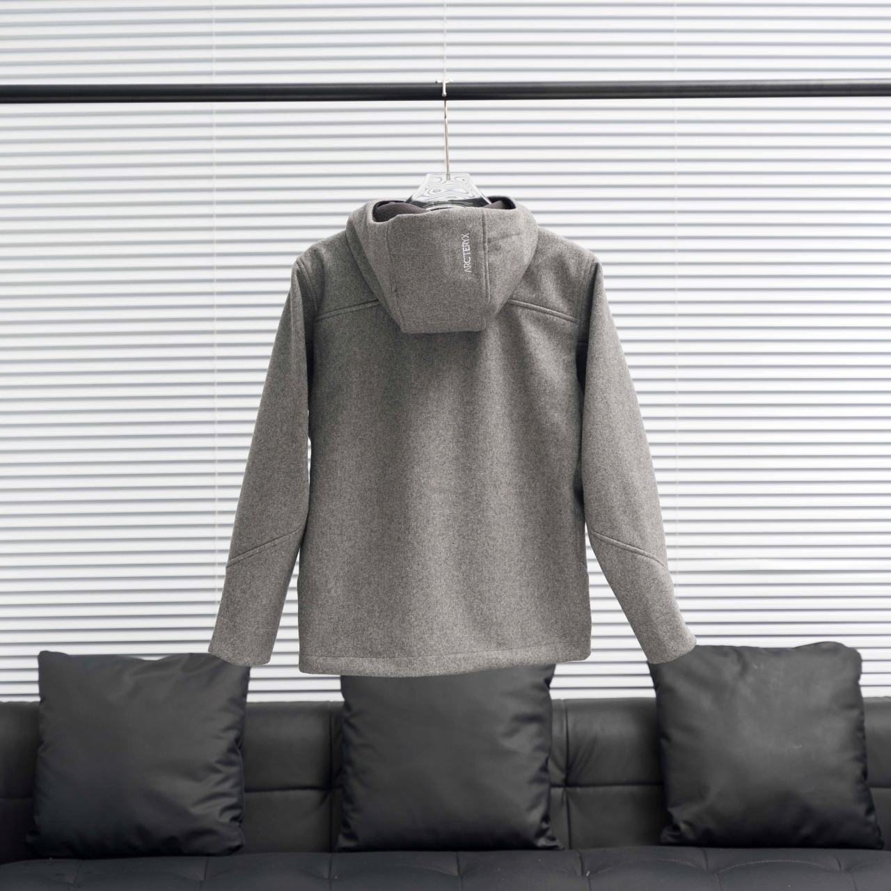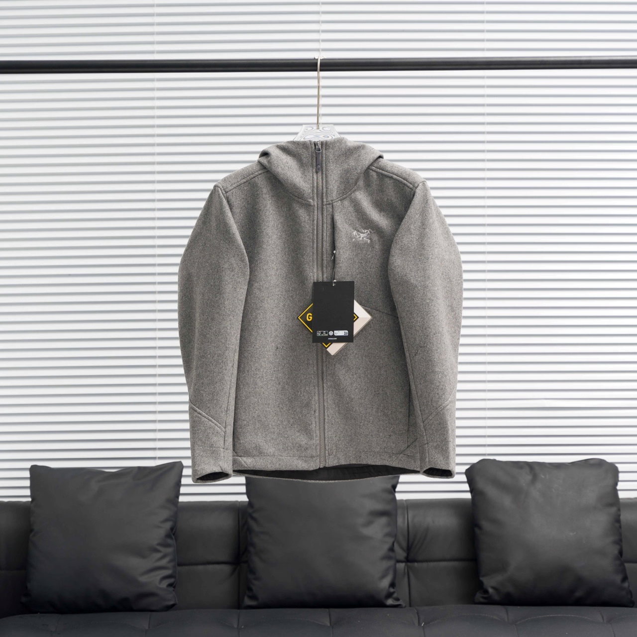 Factory direct Arc'teryx SAWYER cashmere hooded jacket in black and gray, sizes M-4XL.