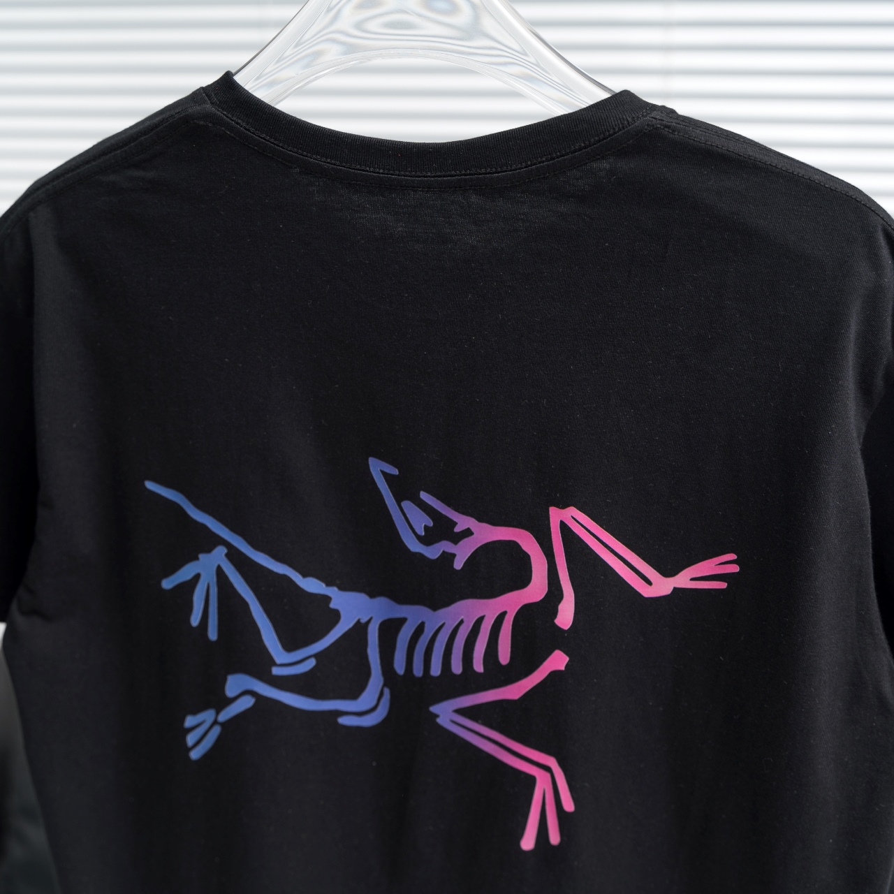 Factory direct supply ARC'TERYX KRAGQ cotton gradient short-sleeve T-shirt. Colors: Black, White. Sizes: M-3XL.