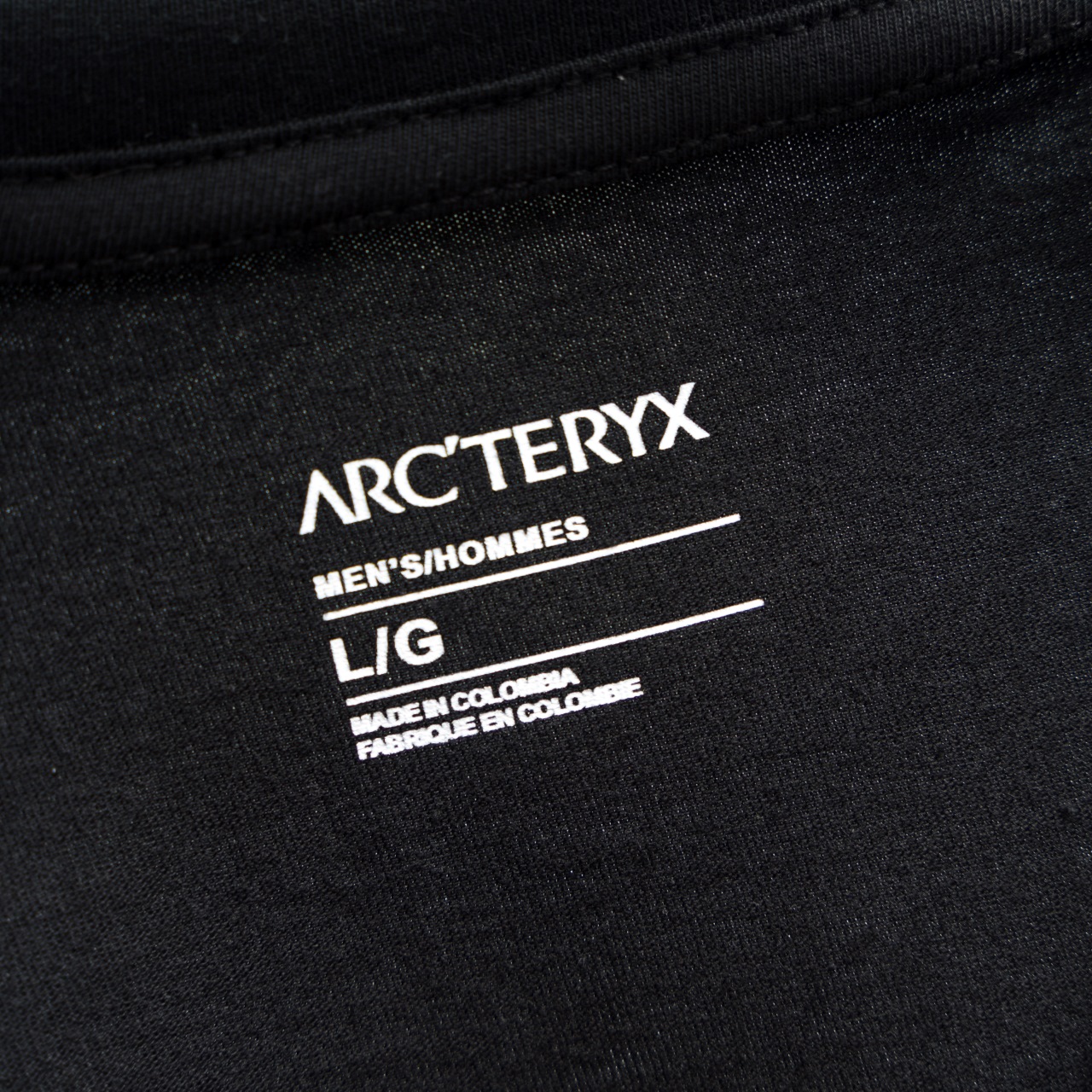 ARC'TERYX basic cotton T-shirt. Colors: Black with silver logo. Sizes: M-3XL for 240g, S-XXL for 300g.