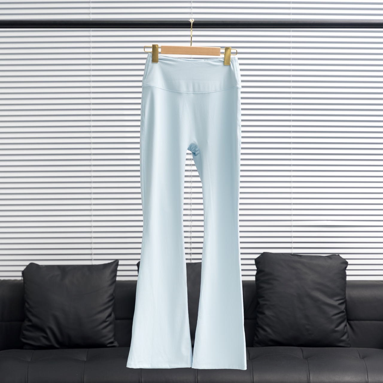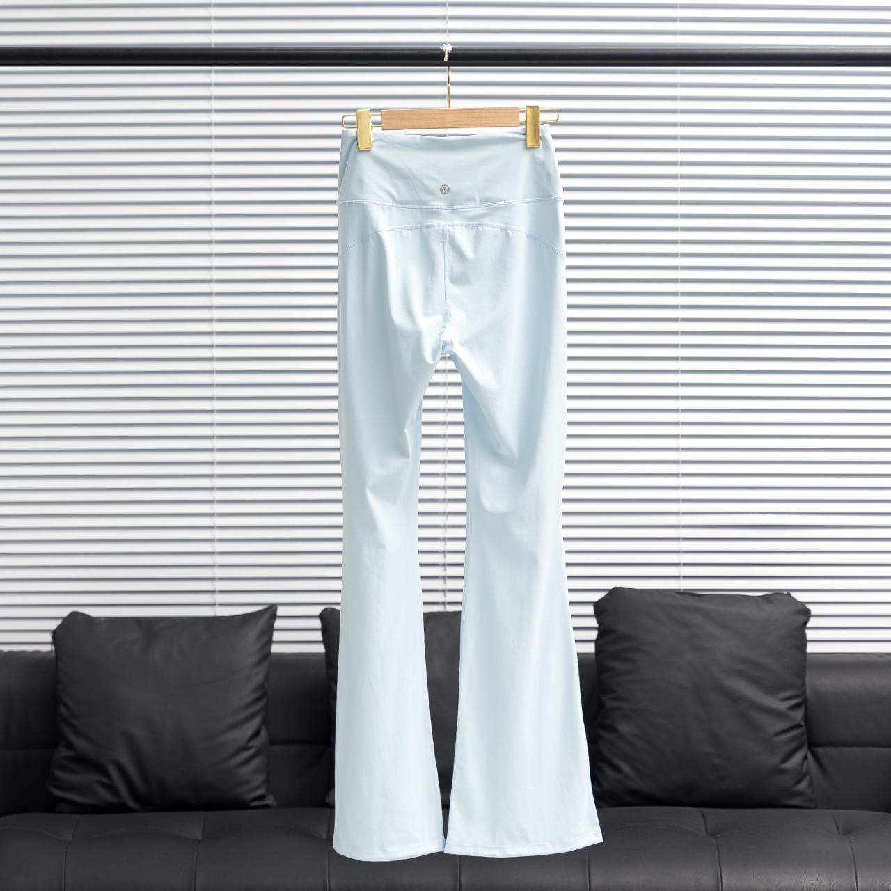 Lululemon wide-leg flared pants in powder blue. Sizes: 2 4 6 8 10 12.
