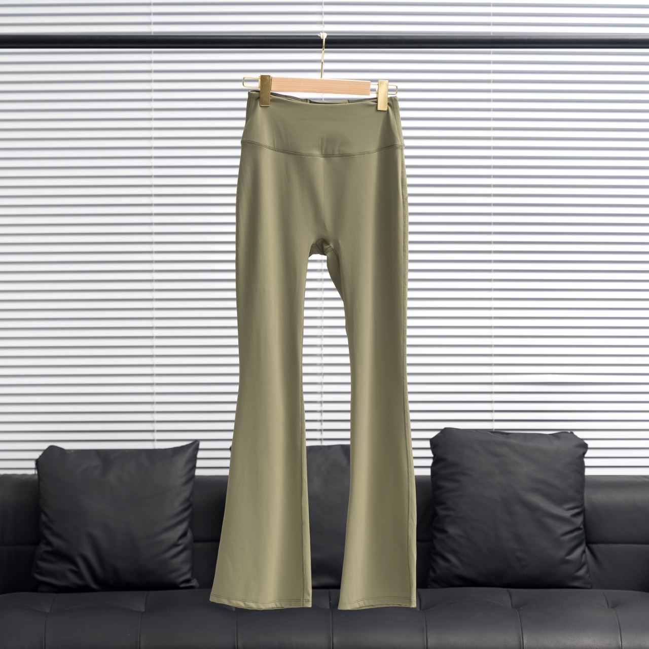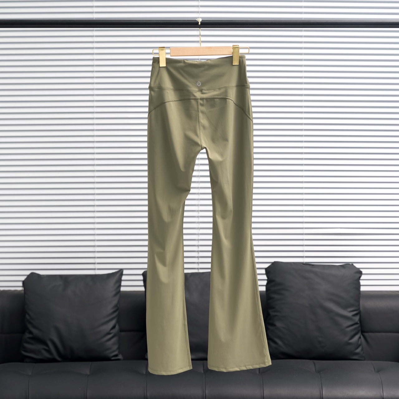 Lululemon wide-leg flared pants in green. Sizes: 2 4 6 8 10 12.