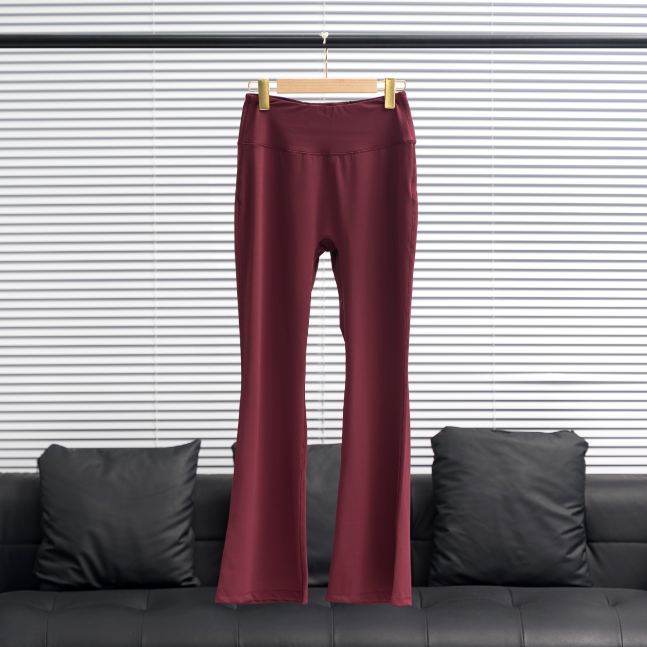 Lululemon wide-leg flared pants in dark red. Sizes: 2 4 6 8 10 12.