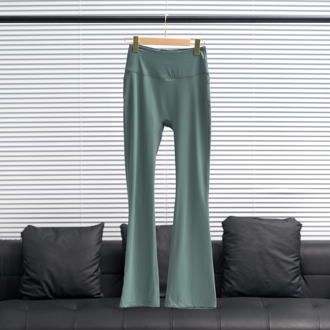 Lululemon wide-leg flared pants in mystic green. Sizes: 2 4 6 8 10 12.
