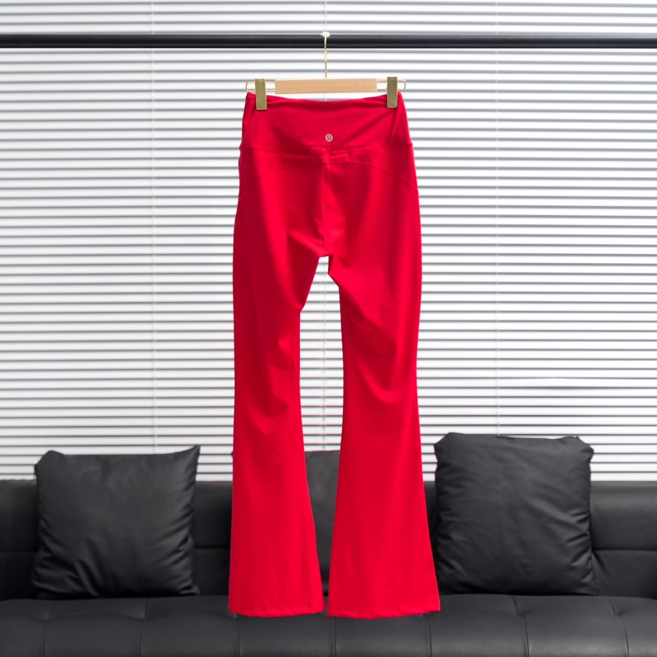 Lululemon flare pants in China red. Sizes: 2 4 6 8 10 12.