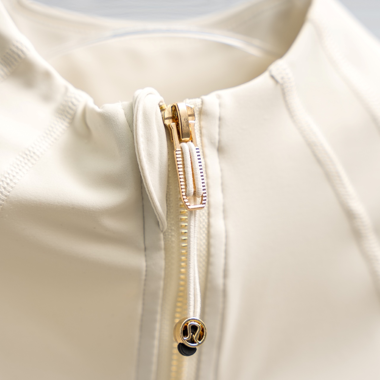 Lululemon Define Gold Zipper Yoga Top in Bone White, sizes 2-12.