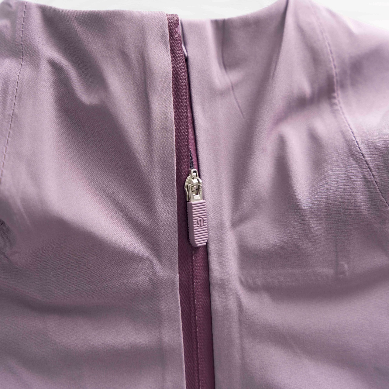 Lululemon Fast and Free breathable hooded jacket in white and purple-gray, sizes S, M, L.