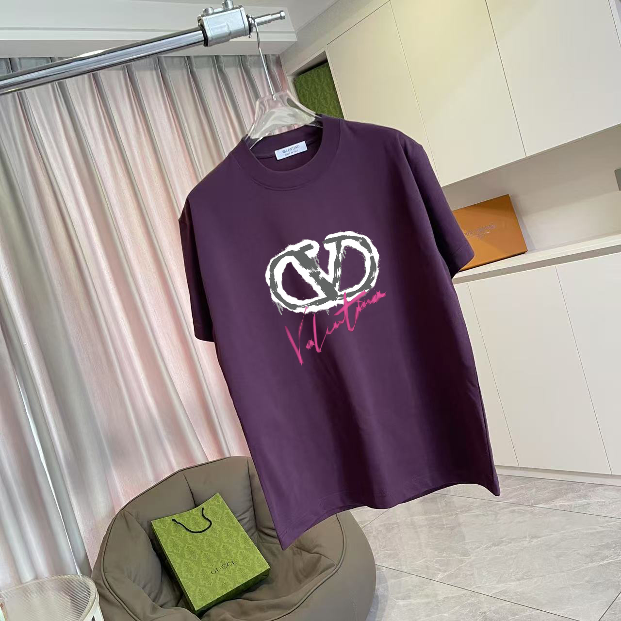 VALENTIN* Valentino 2025 Fall New Style Personalized Letter Logo Print Custom Fabric 300g Short Sleeve T-Shirt Unisex