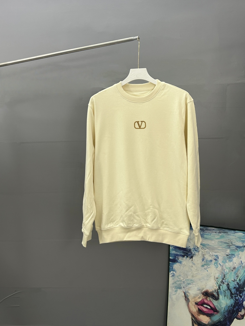 Home • Apparel • Valentino embroidered sweatshirt, 2026 autumn/winter, round neck, long sleeve, 380G fabric. Colors: beige, black, white. Sizes: S, M, L, XL.