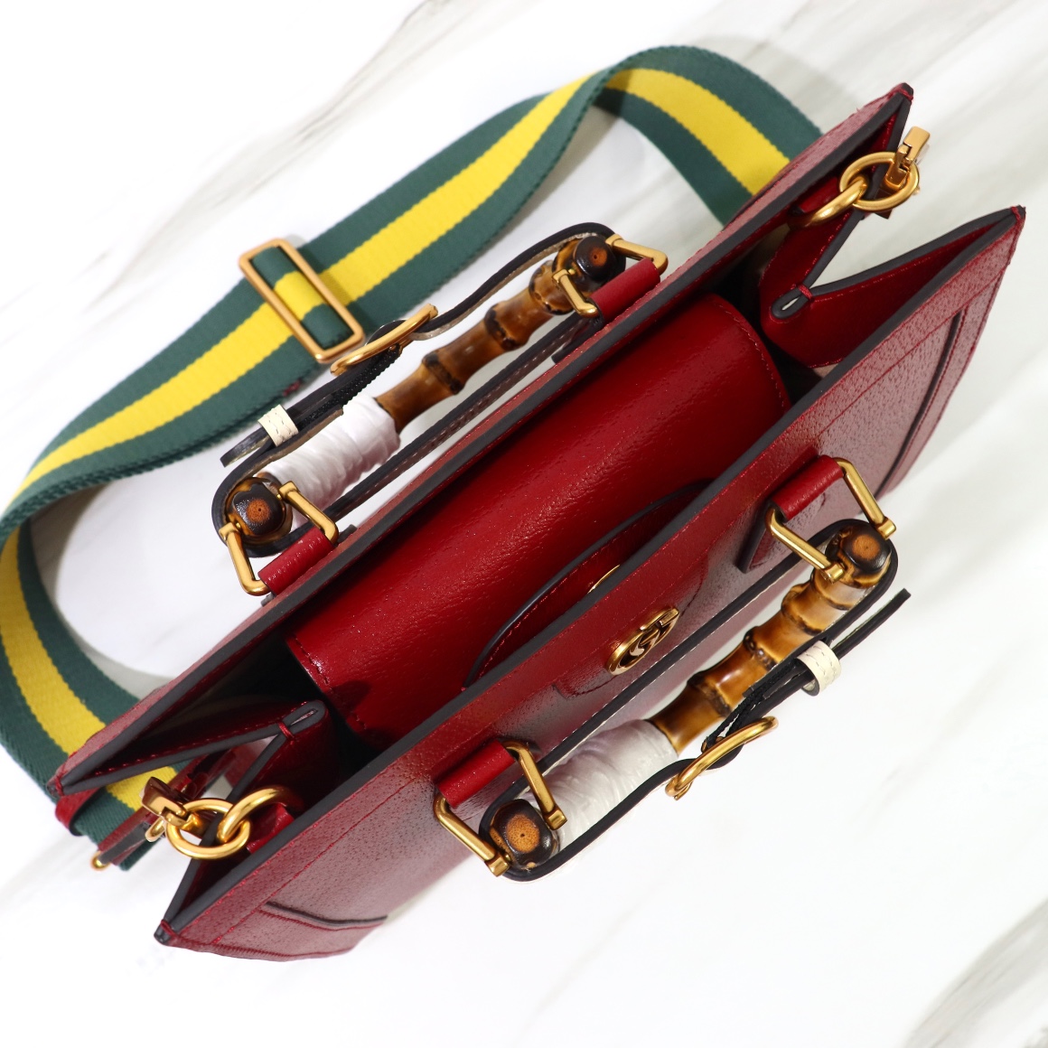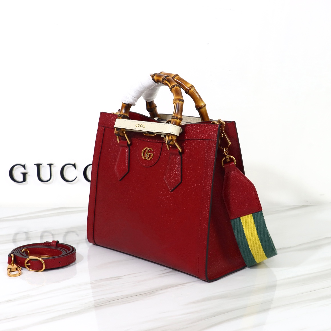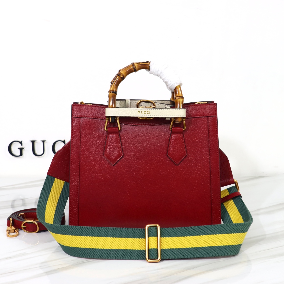High-quality, original leather, style number 702721 red leather. Dimensions: width 27 x height 24 x side width 11. Ready stock available now!