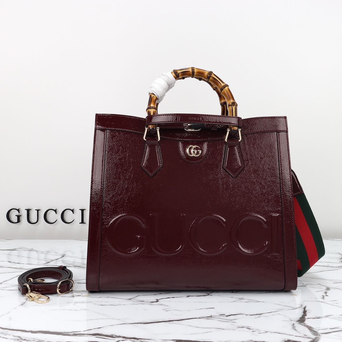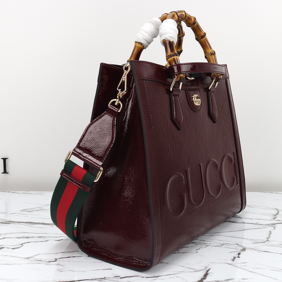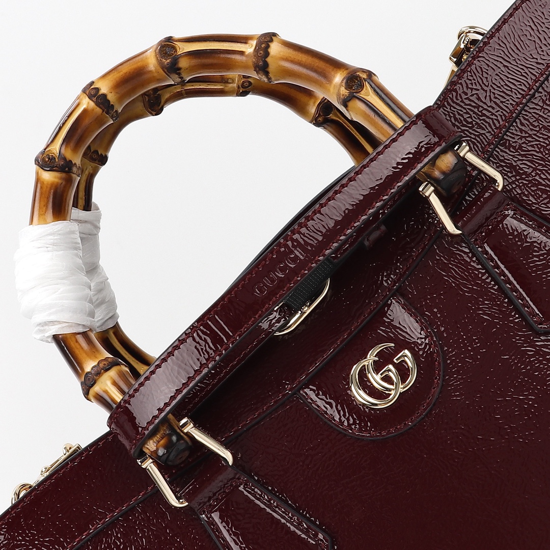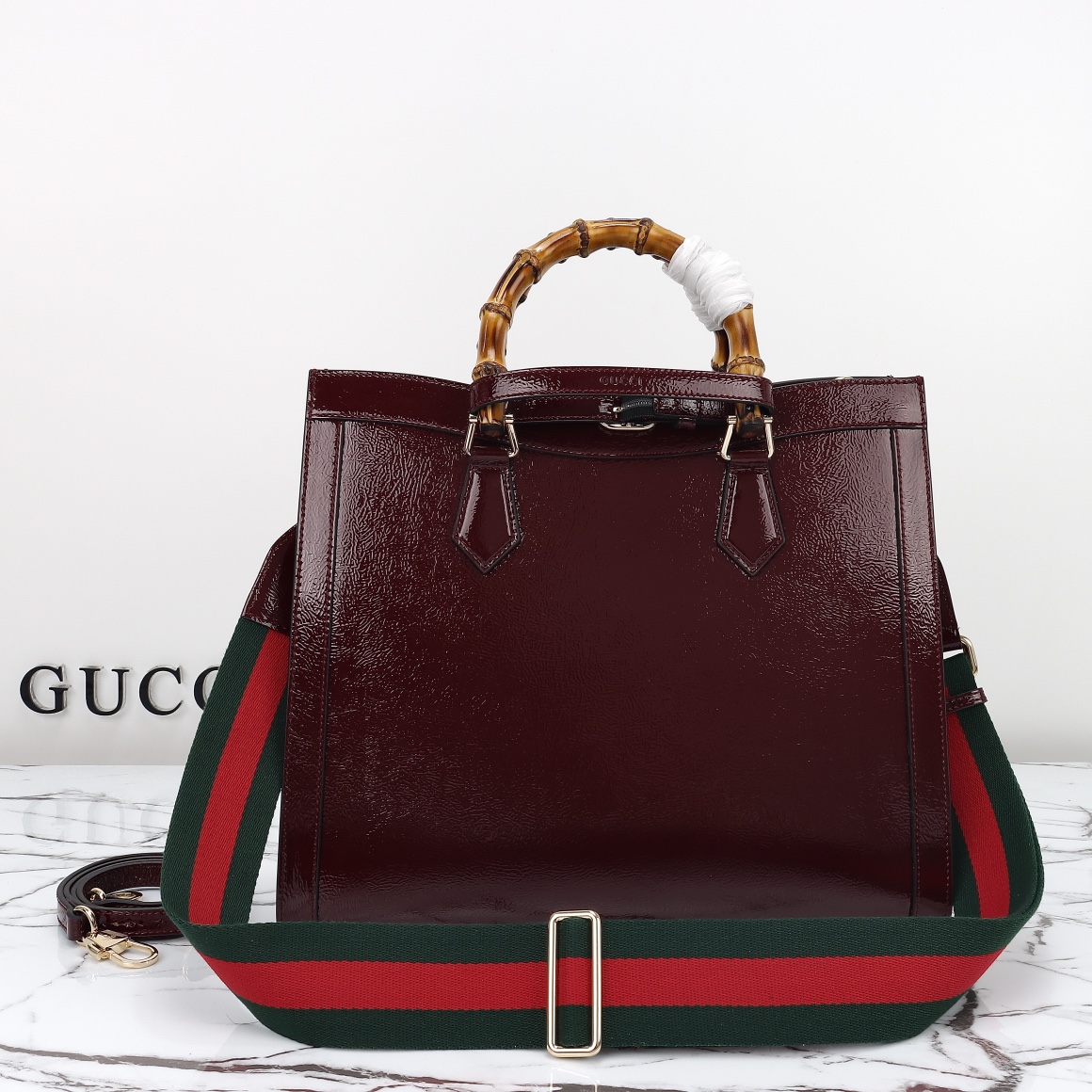 High-quality, original factory leather, style 678842 red patent leather. Dimensions: width 35 x height 30 x side width 14. In stock, ready to ship!