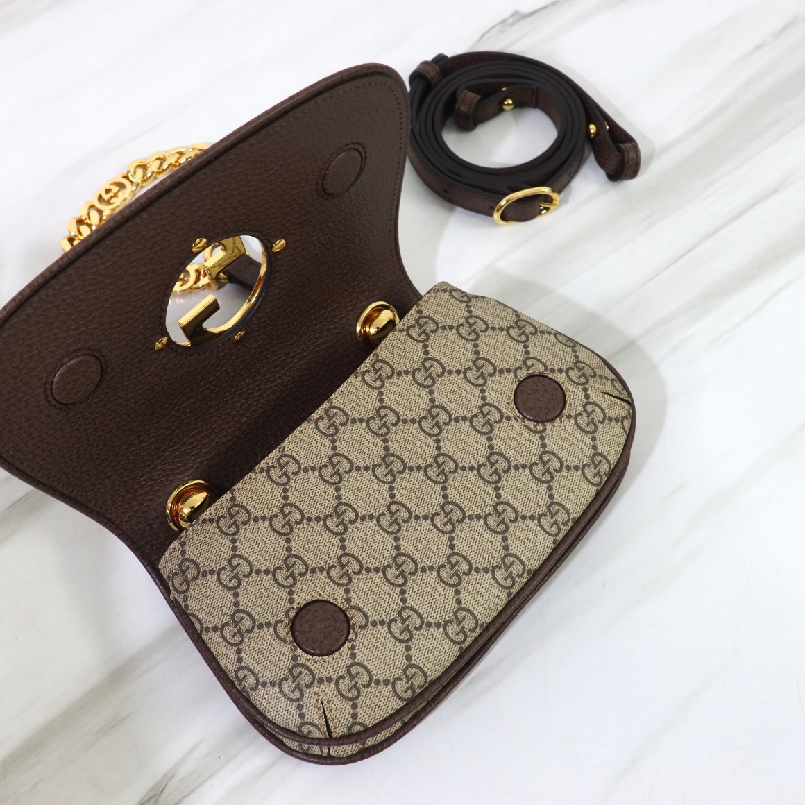 Counter quality, original factory leather, style number 724645 apricot brown. Dimensions: width 21.5 x height 13.5 x side width 7. Ready stock available for shipment!