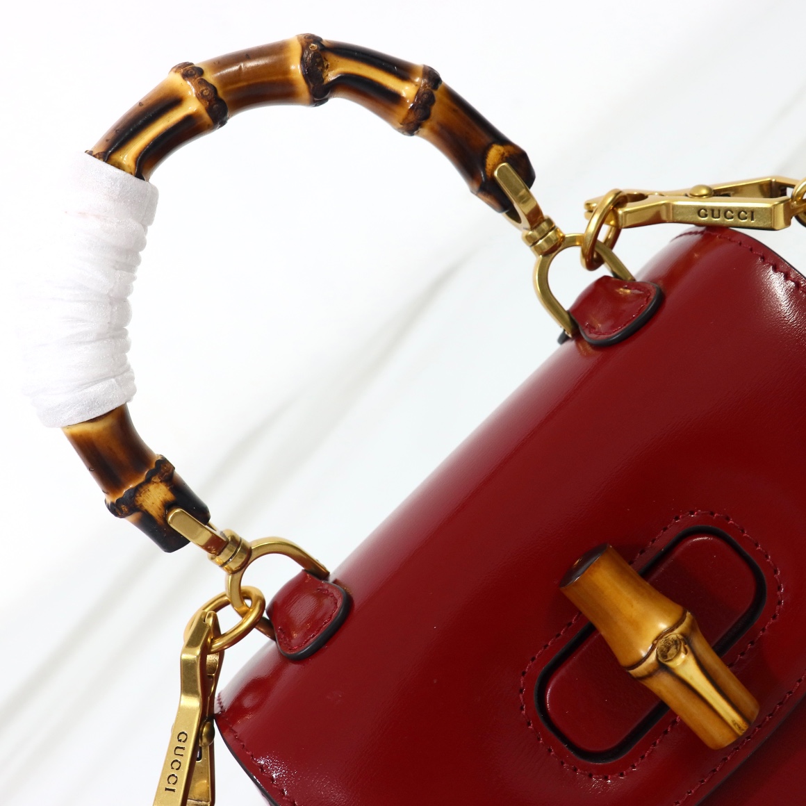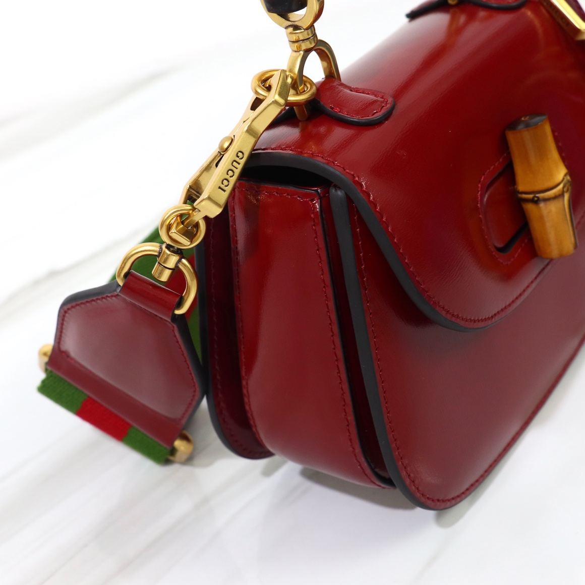Counter quality, original factory leather, style number 686864 bright red. Dimensions: width 17 x height 12 x side width 7.5. Ready stock available for shipment!