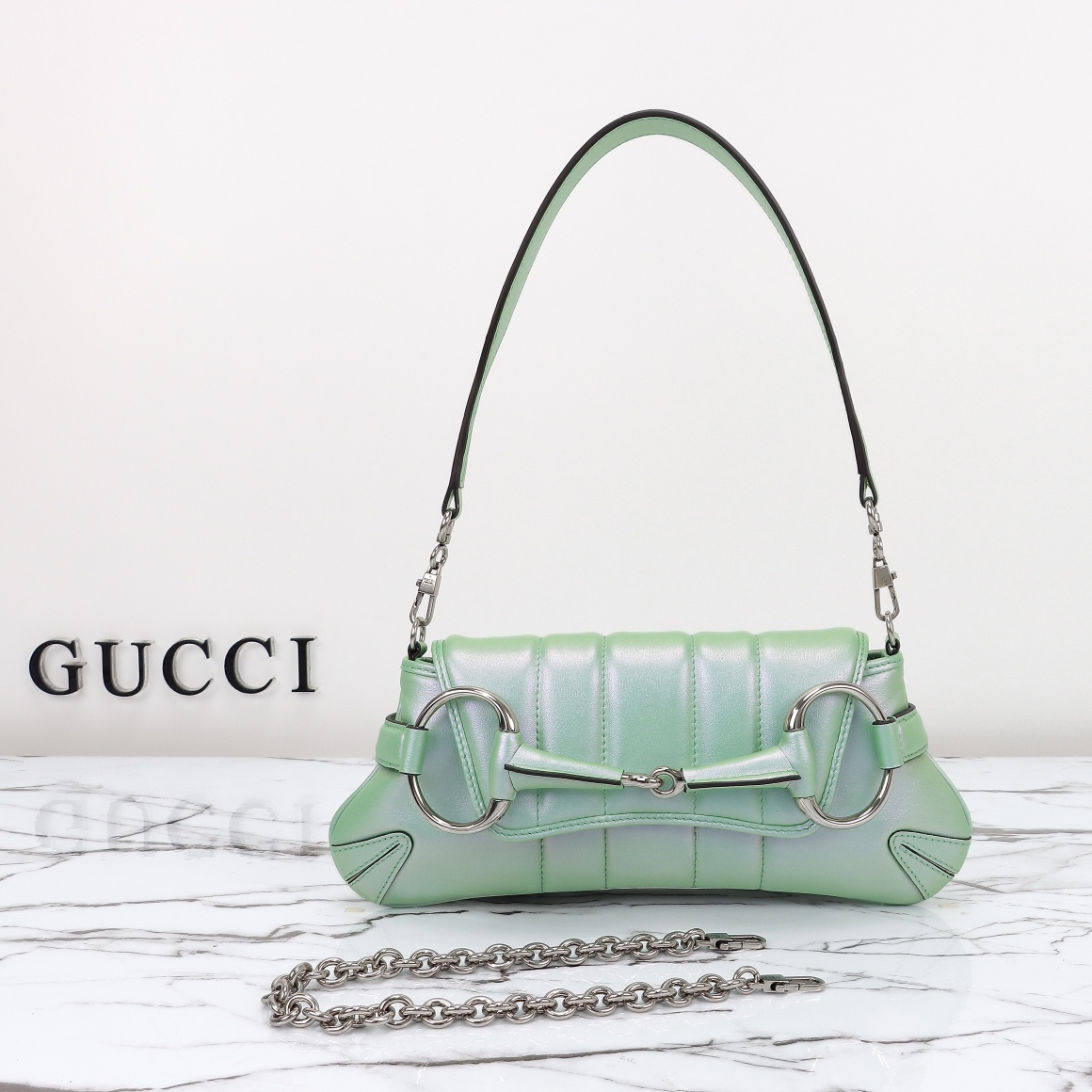 Special offer, counter quality, original factory leather, style number 764339 rainbow green leather. Dimensions: width 27 x height 11.5 x side width 5. In stock, ready to ship!