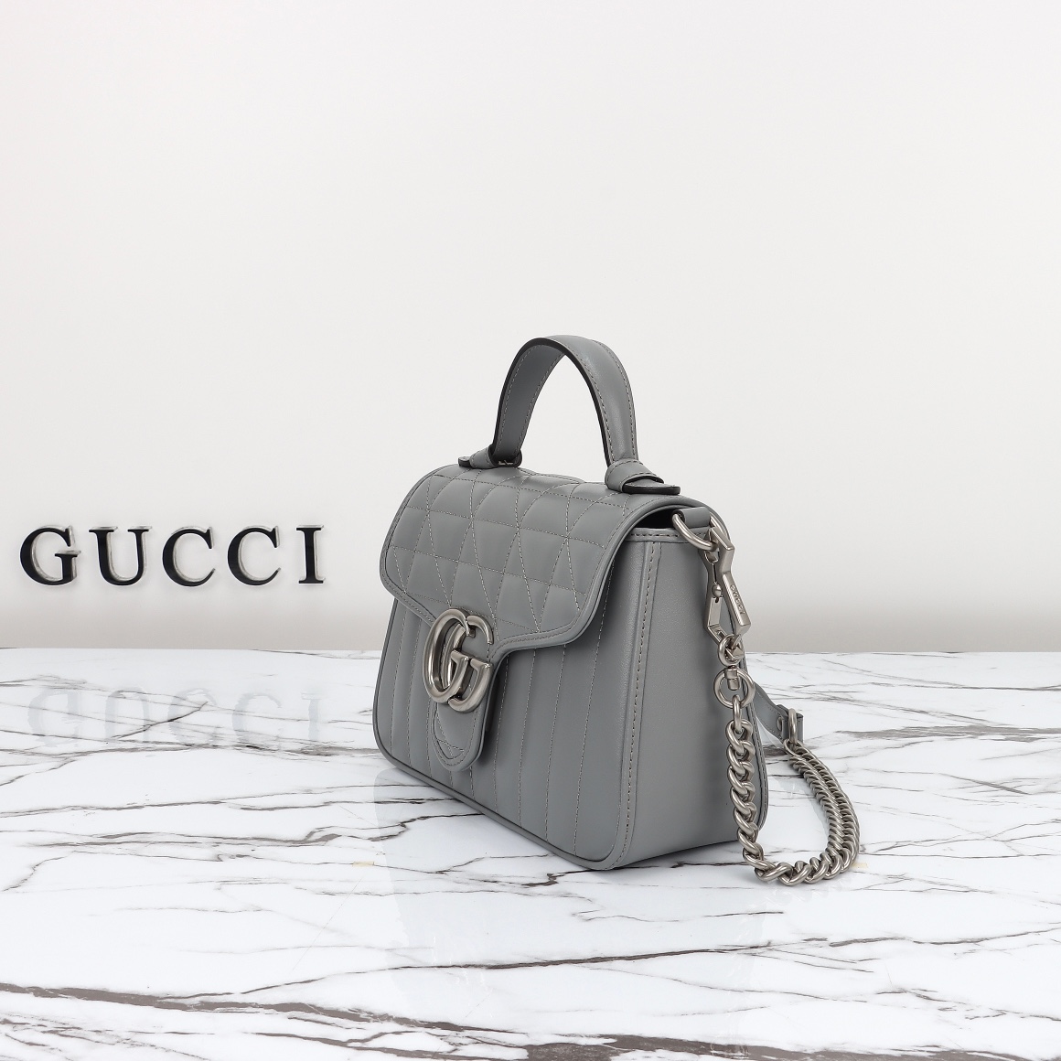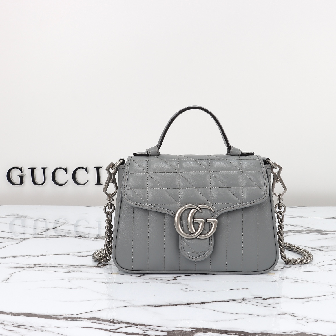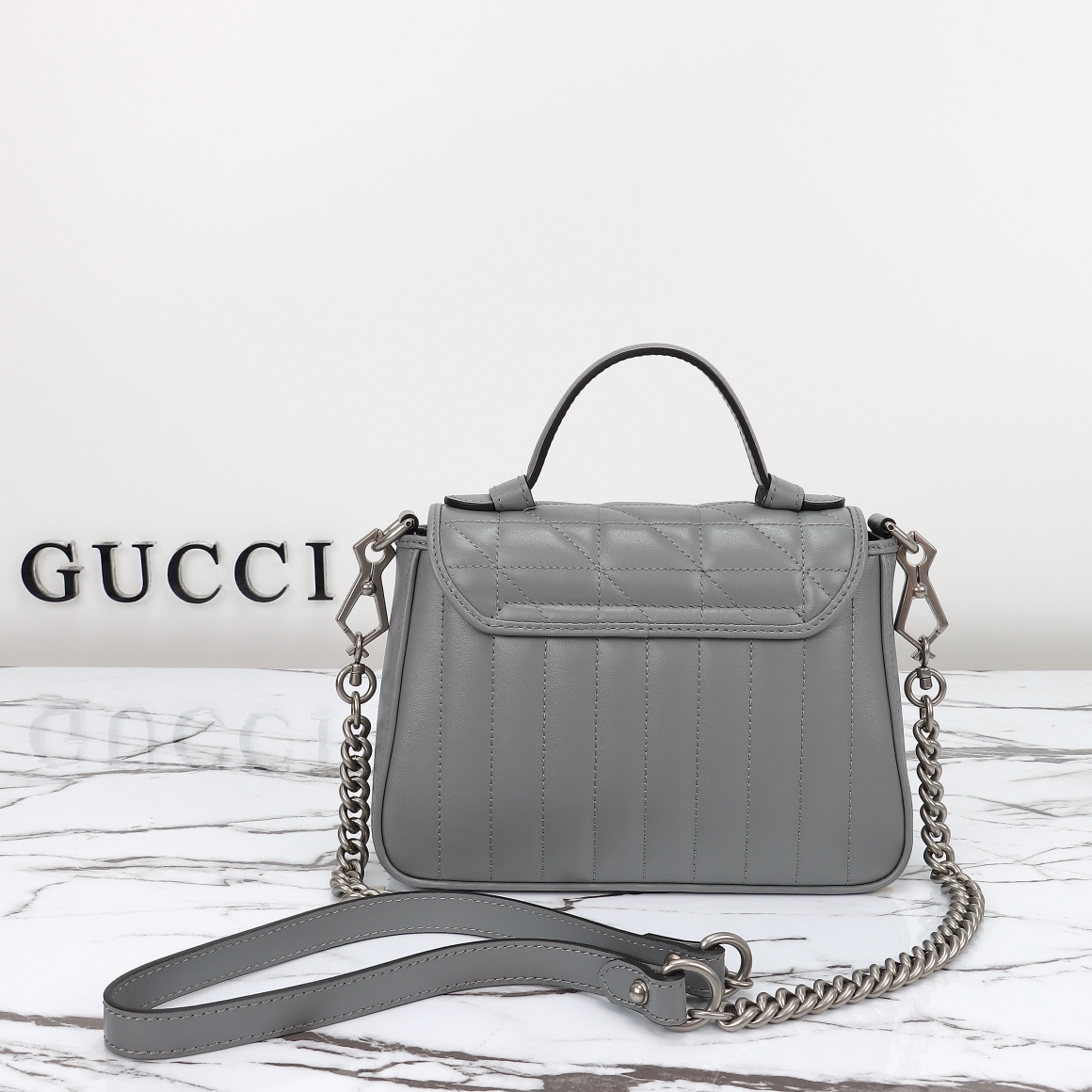 Special offer, counter quality, original factory leather, style number 583571 gray check. Size: width 21 x height 15.5 x side width 8. In stock shipment!