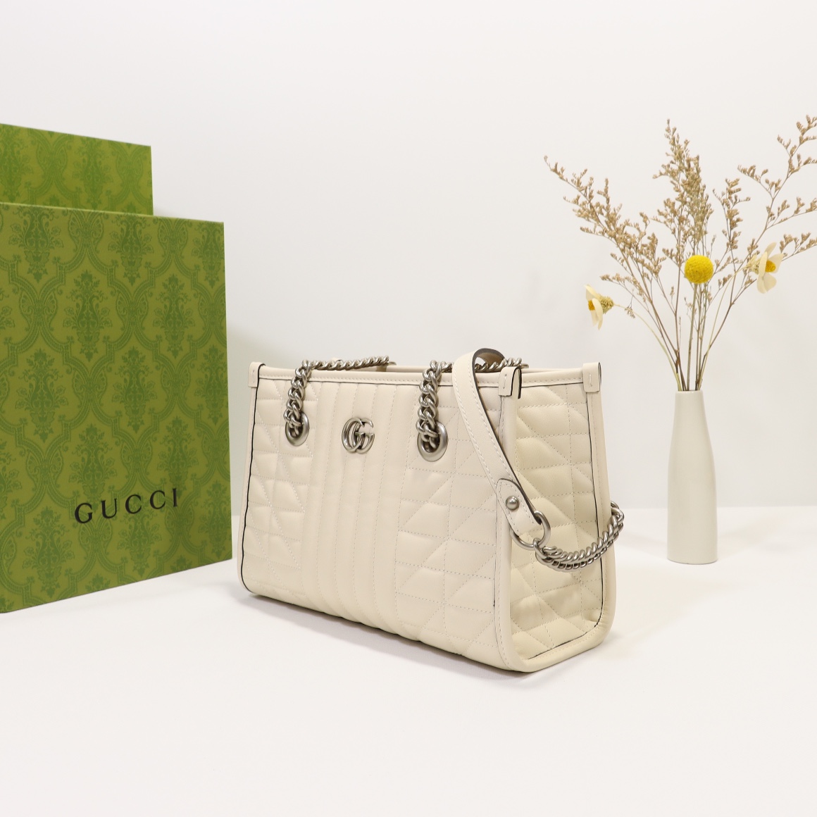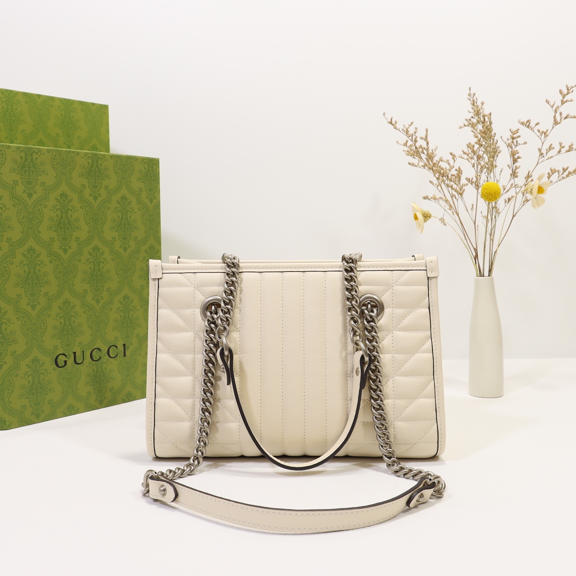 Special offer, counter quality, original factory leather, style number 681483 white leather check. Size: width 26.5 x height 19 x side width 11. In stock shipping!