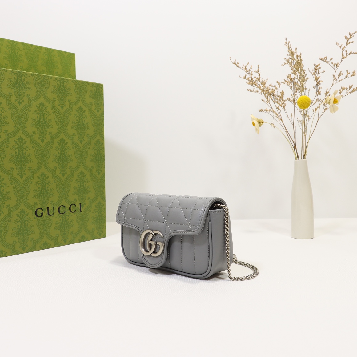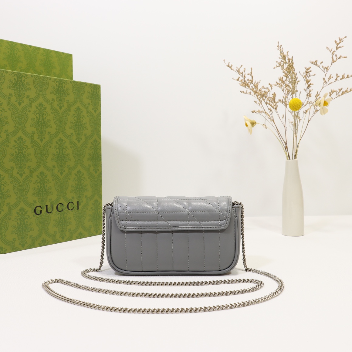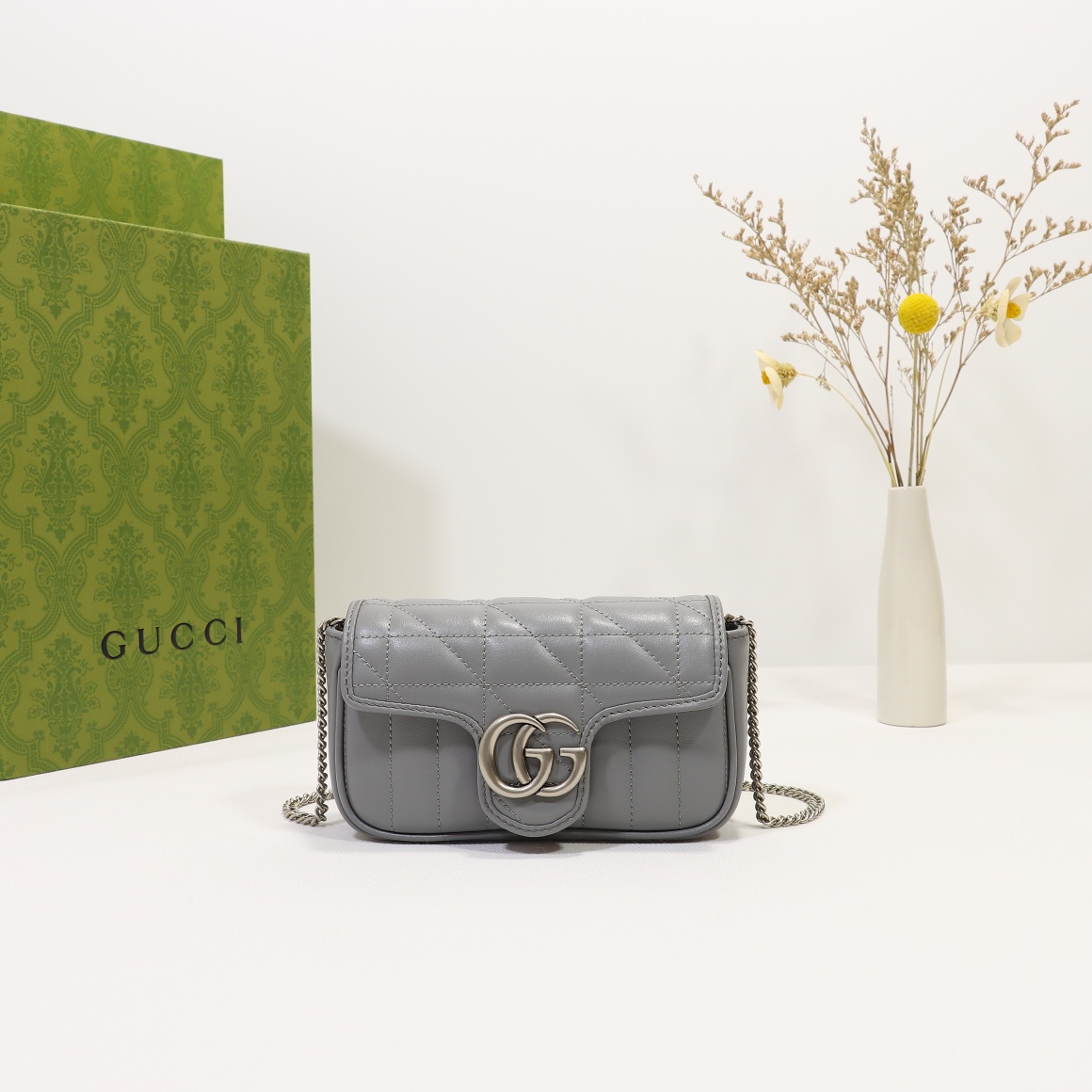 Batch 350, counter quality, original factory leather, style number 476433 gray leather check. Size: width 16.5 x height 10 x side width 4.5. Ready stock available!