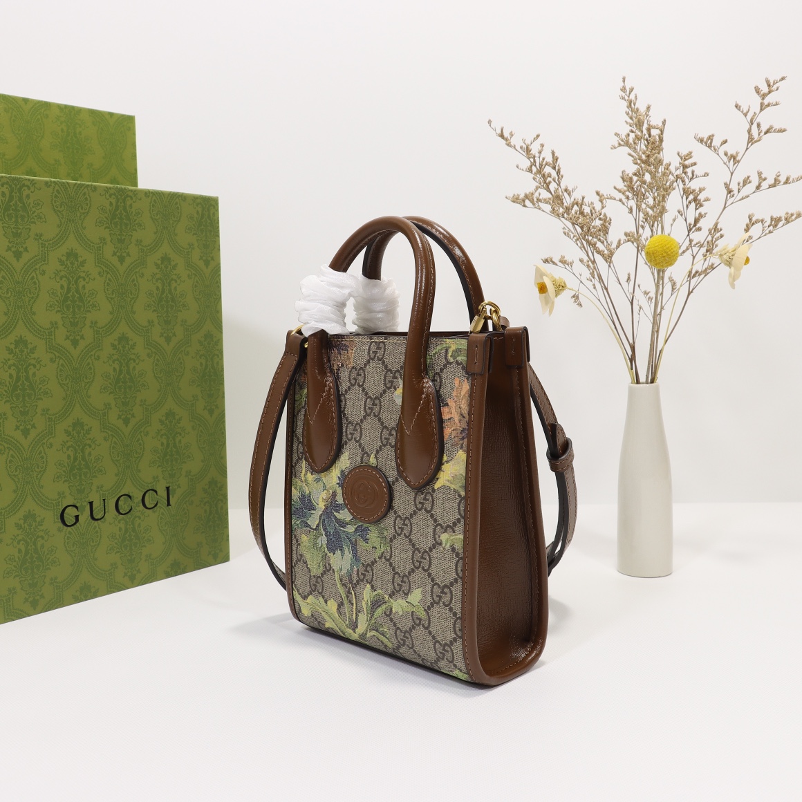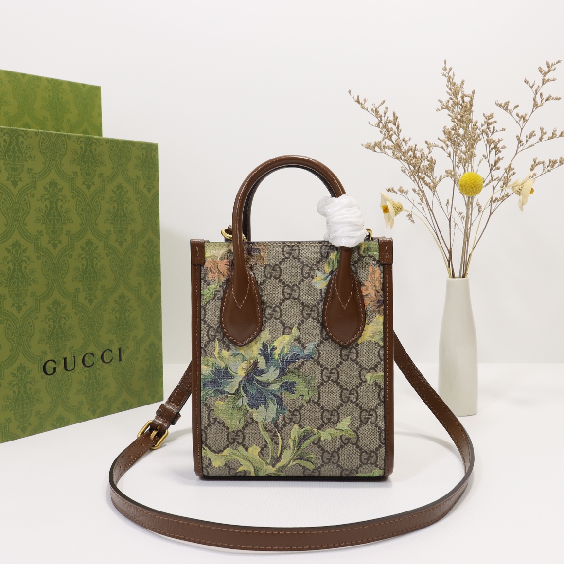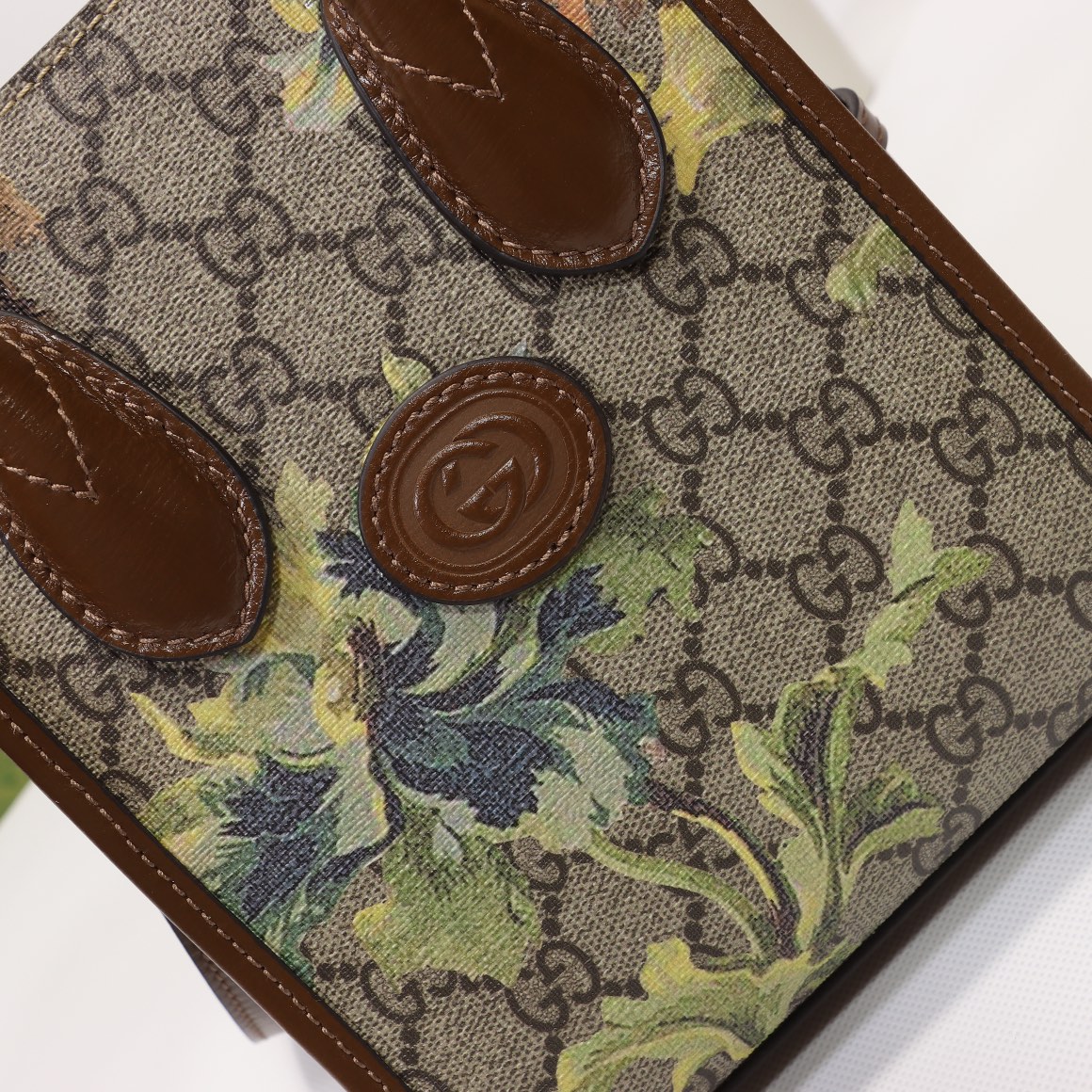 Wholesale 360, counter quality, original factory leather, style number 671623 apricot brown green flower. Dimensions: width 16 x height 20 x side width 7. Ready stock available for shipment!