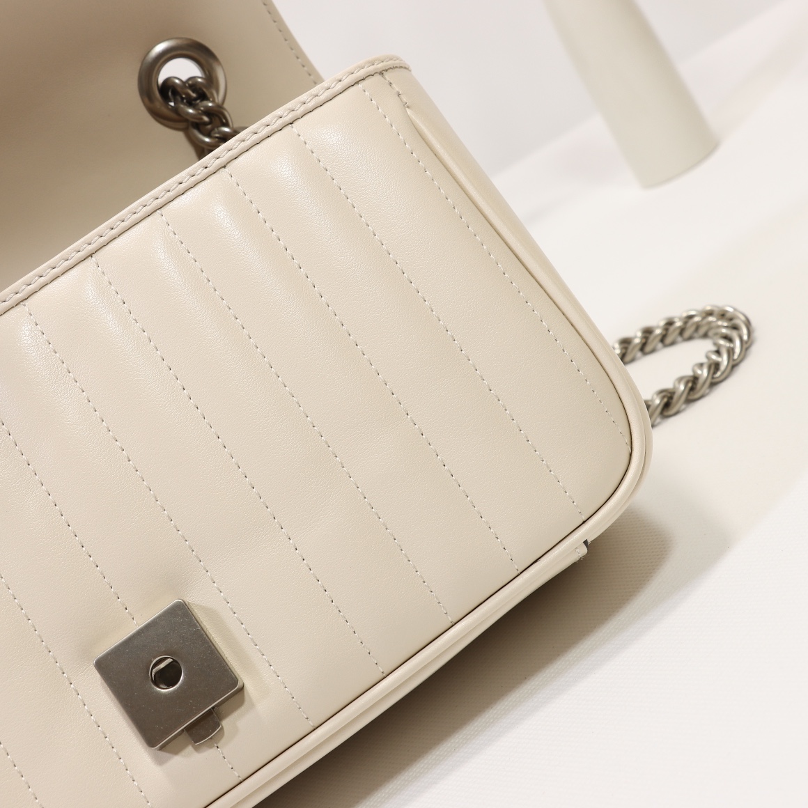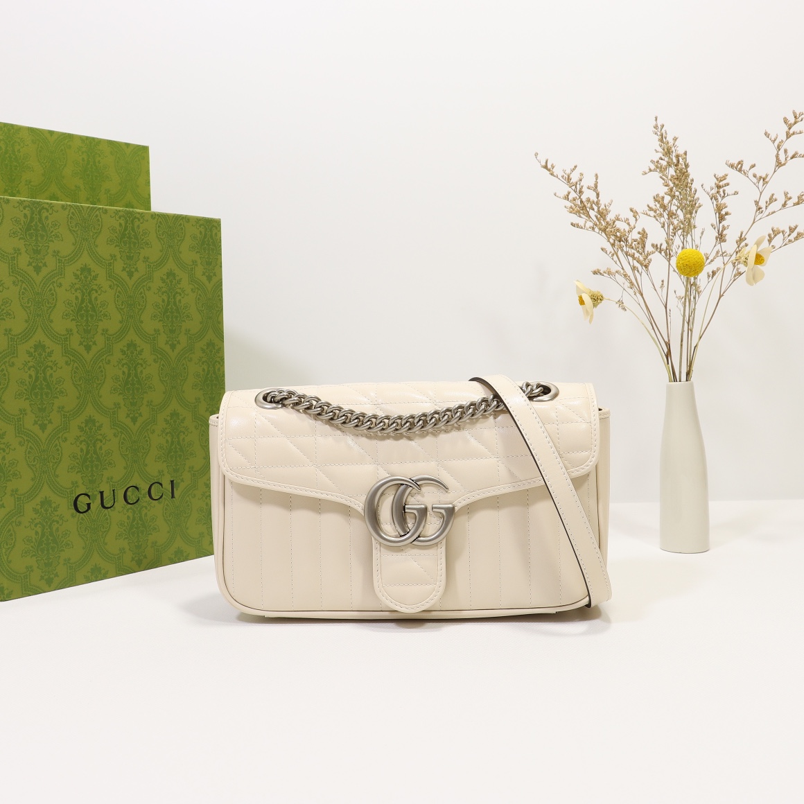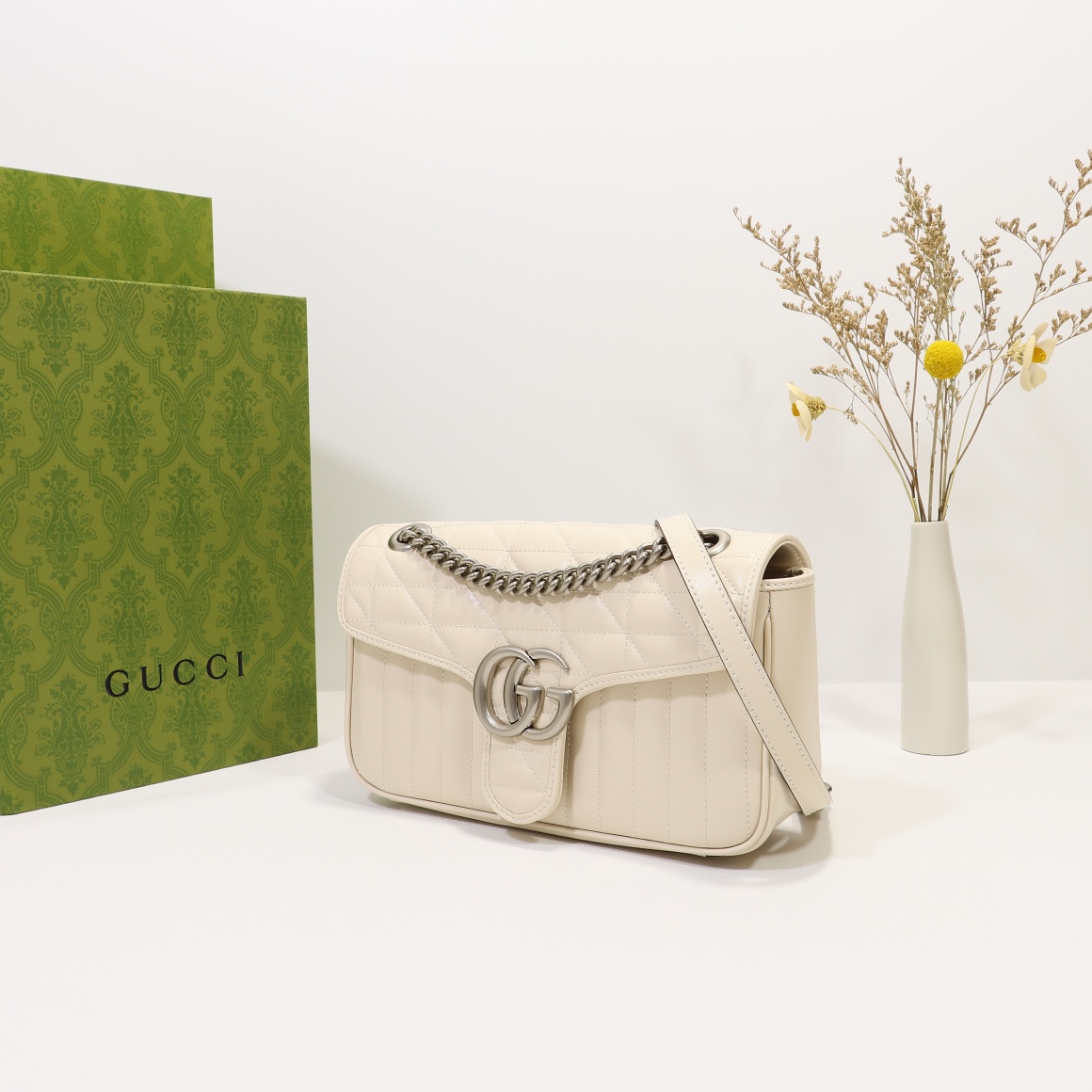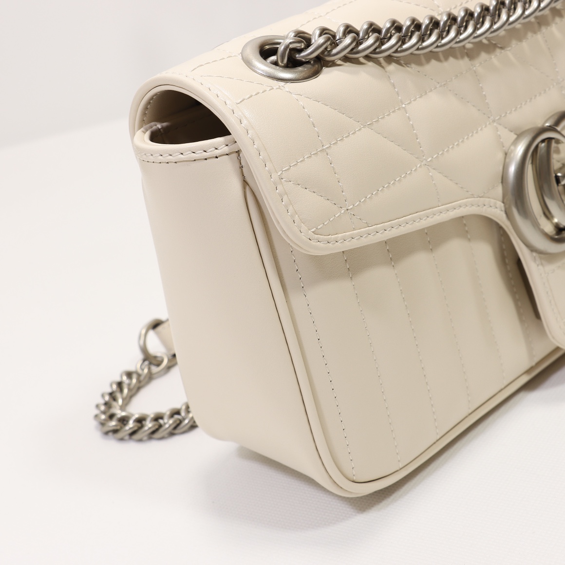Counter quality, original factory leather, style number 443497 white check. Dimensions: width 26 x height 15 x side width 7. Ready stock available for shipment!