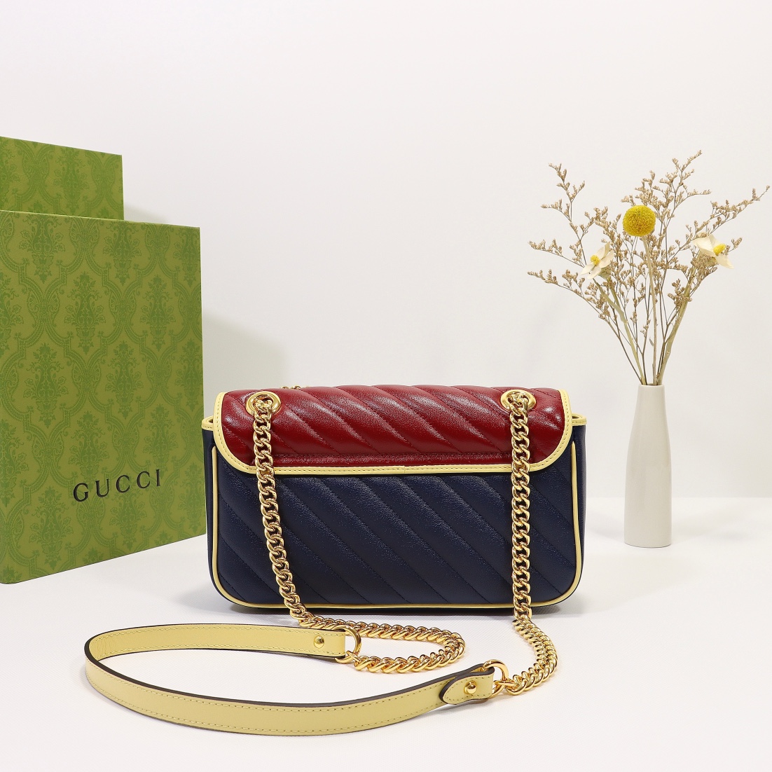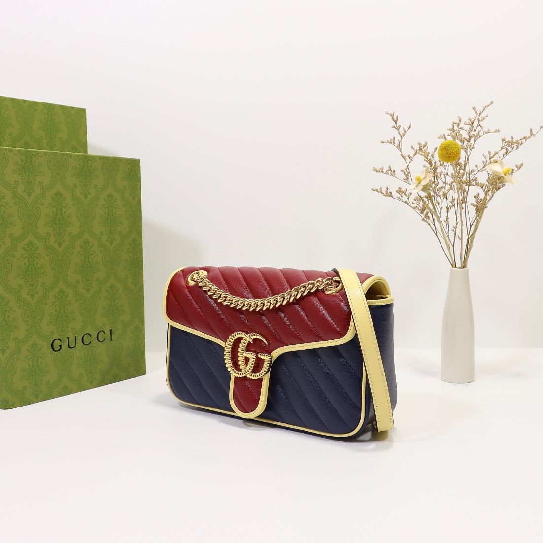 High-quality, genuine leather from the original factory, style number 443497 blue apricot red. Dimensions: width 26 x height 15 x side width 7. Ready stock available now!