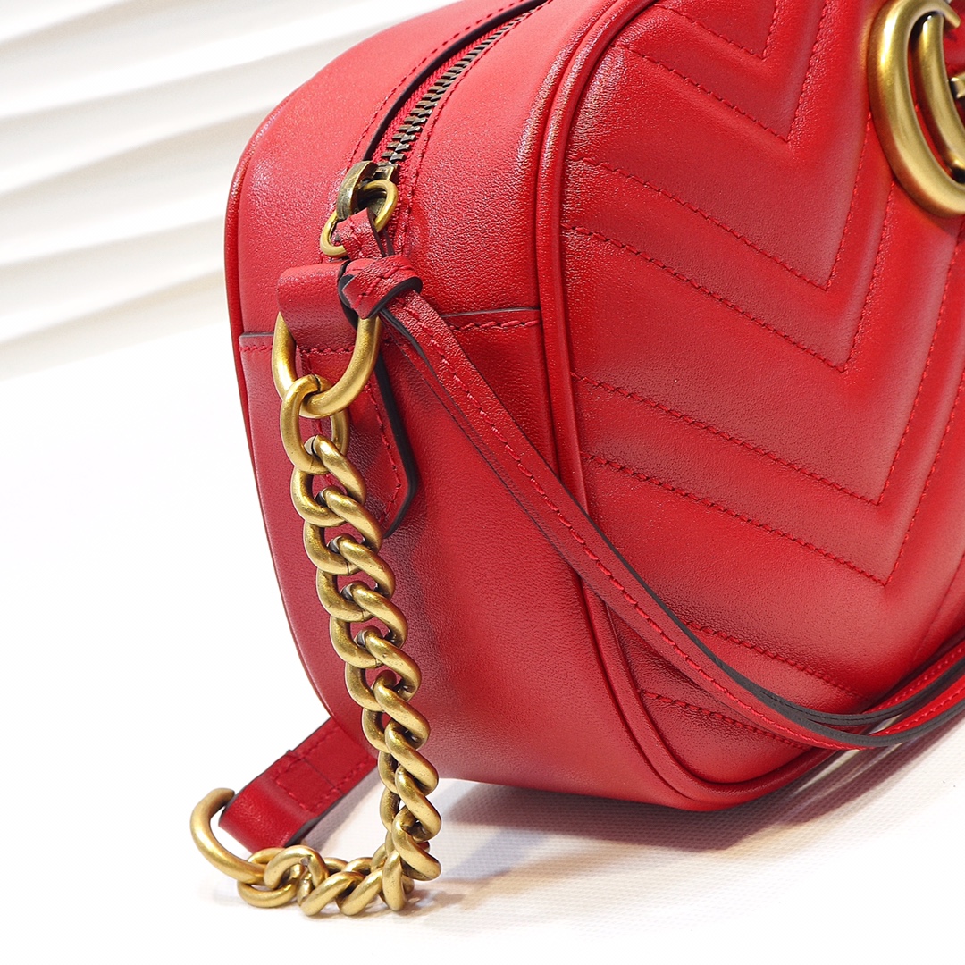 Batch 310, counter quality, original factory leather, style number 447632 red. Size: width 24 x height 13 x side width 7. Stock available for shipment!