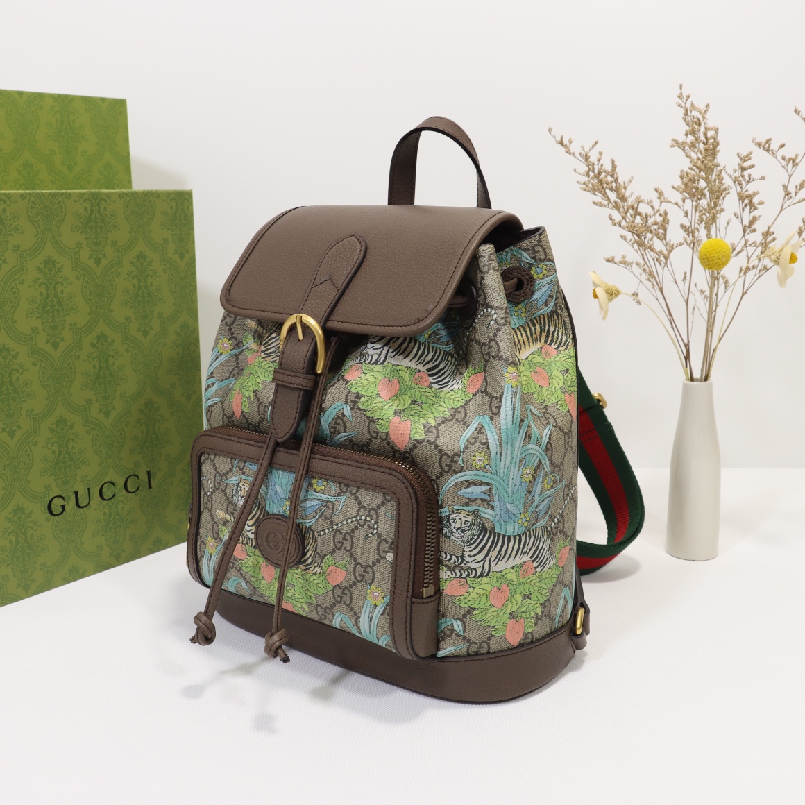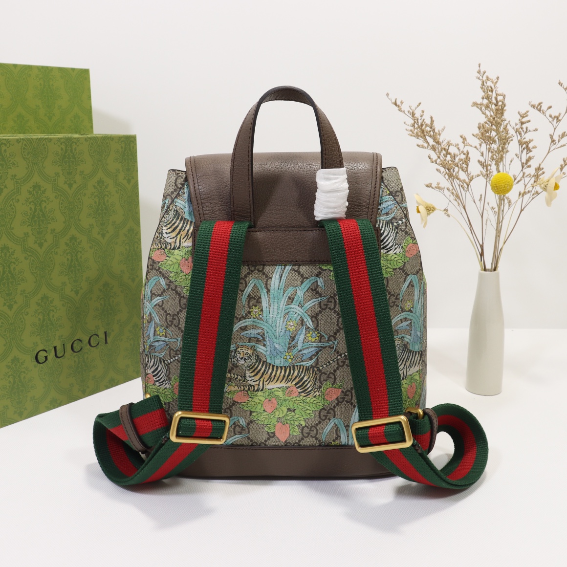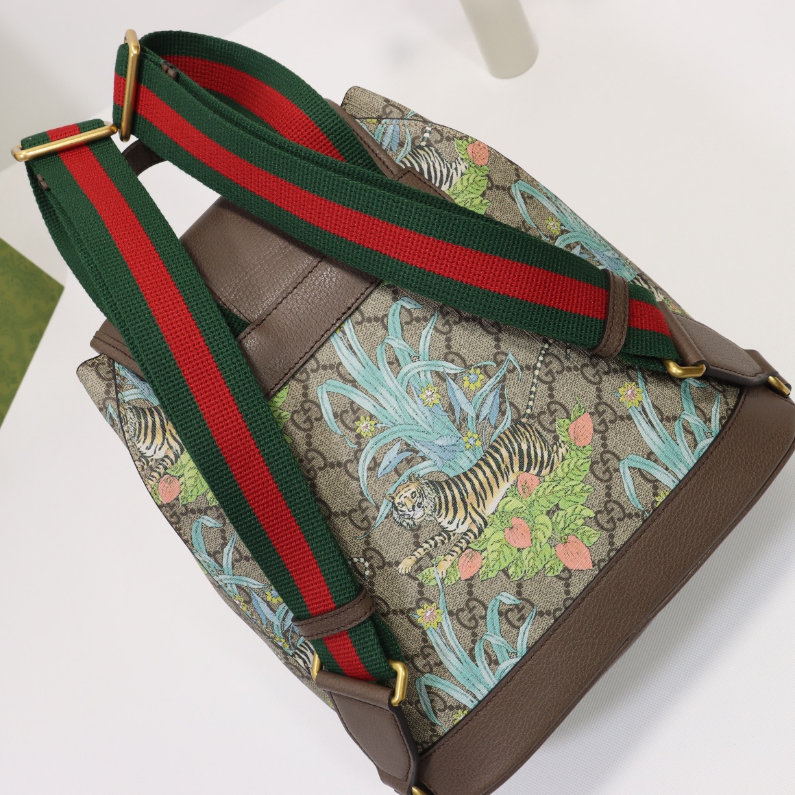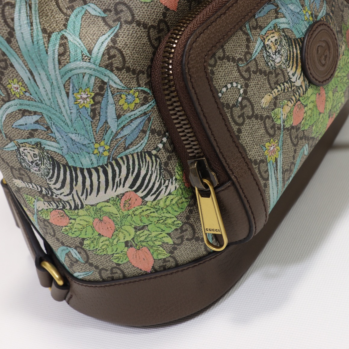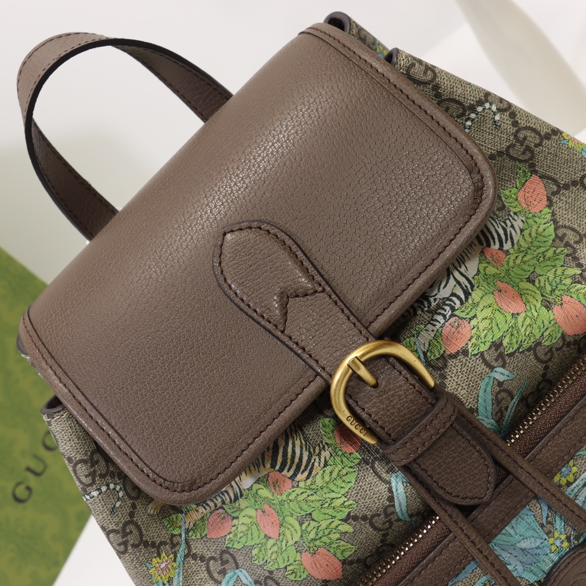 Counter quality, original factory leather, style number 674147 tiger screen printing. Dimensions: width 26.5 x height 30 x side width 13. Ready stock available!