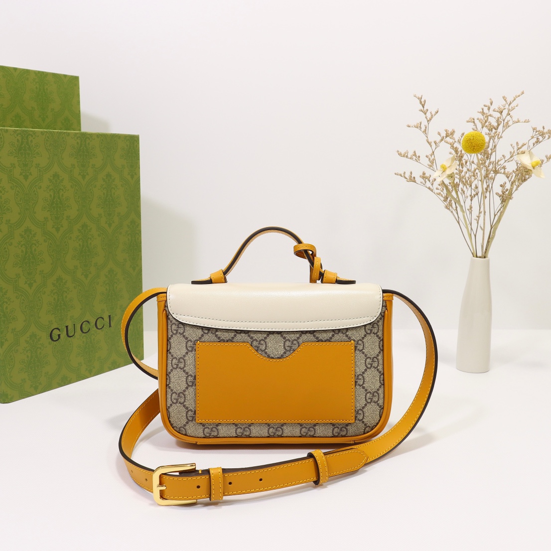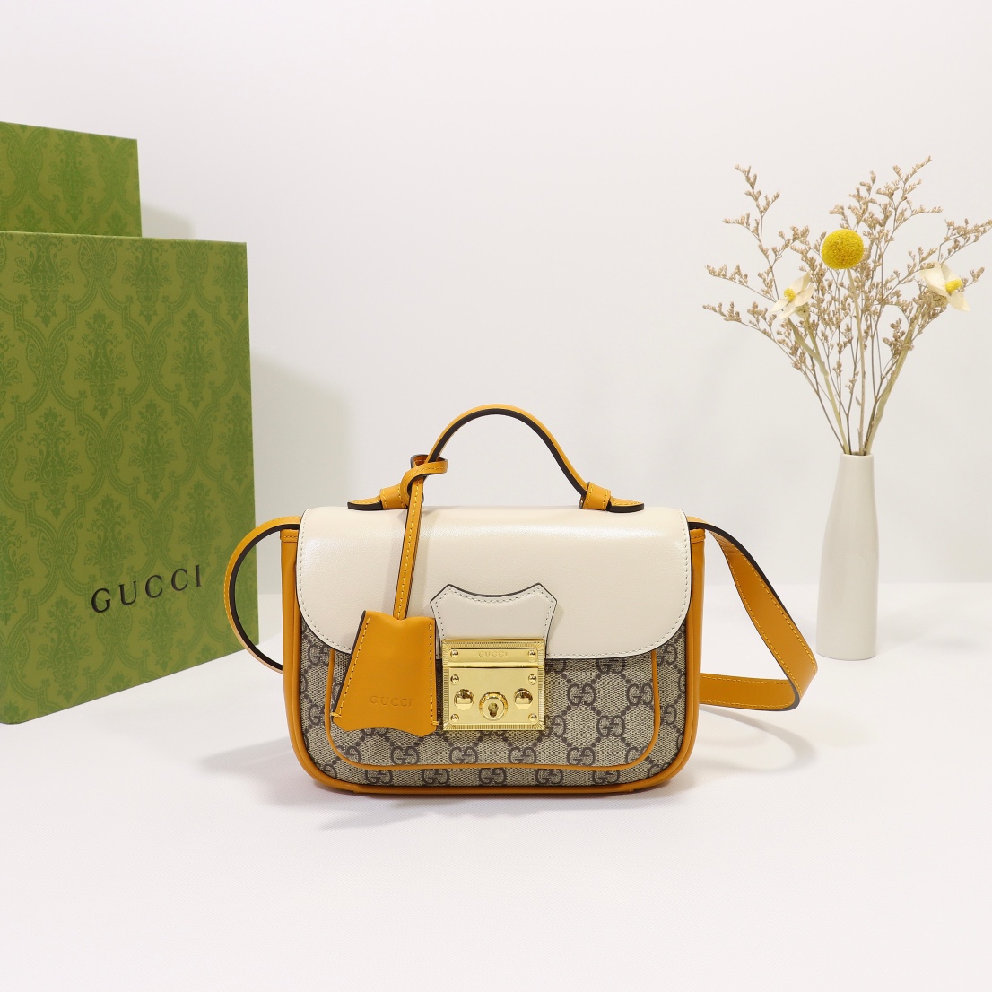 Batch 510, counter quality, original factory leather, style number 658487 yellow white. Size: width 21 x height 14 x side width 5. Ready stock available!