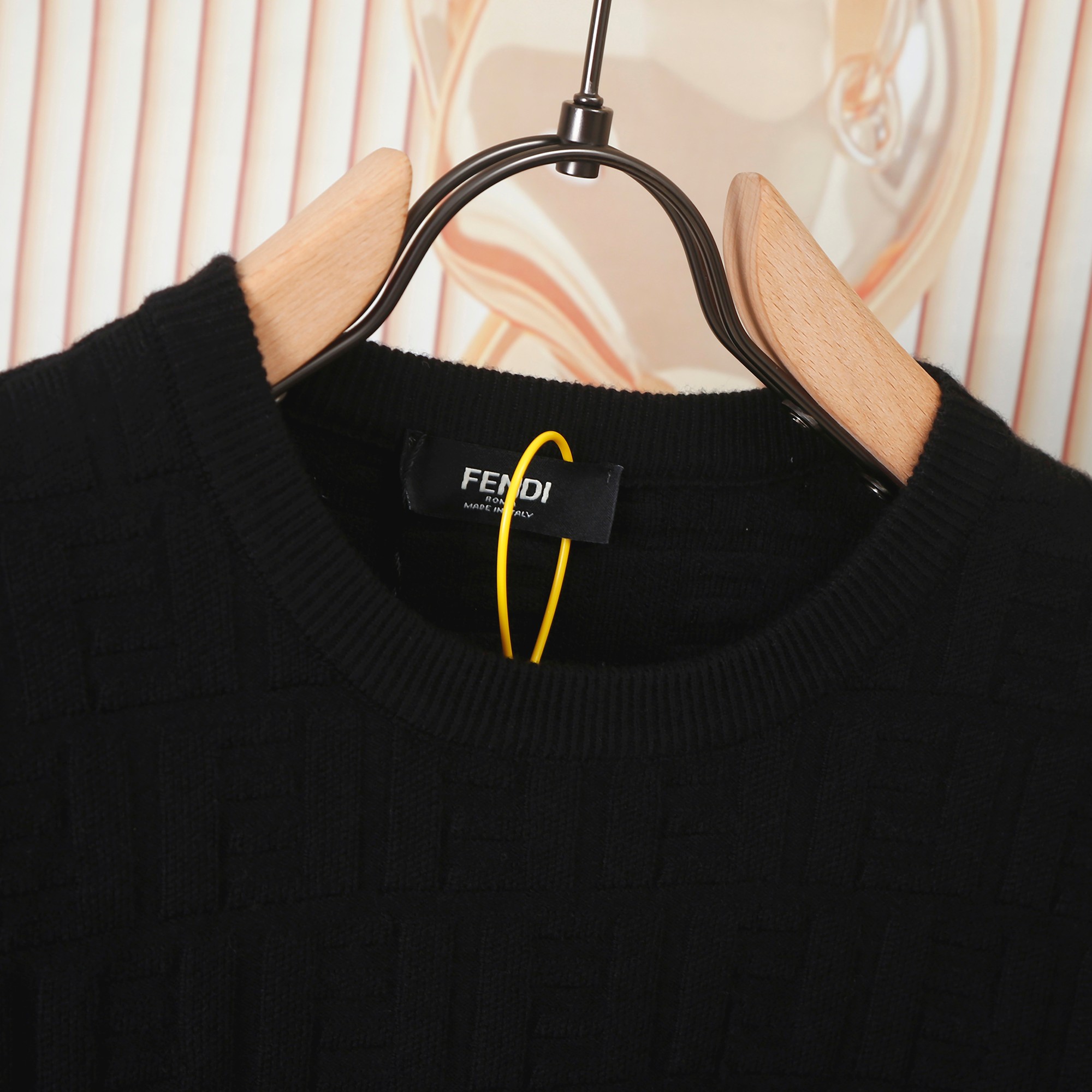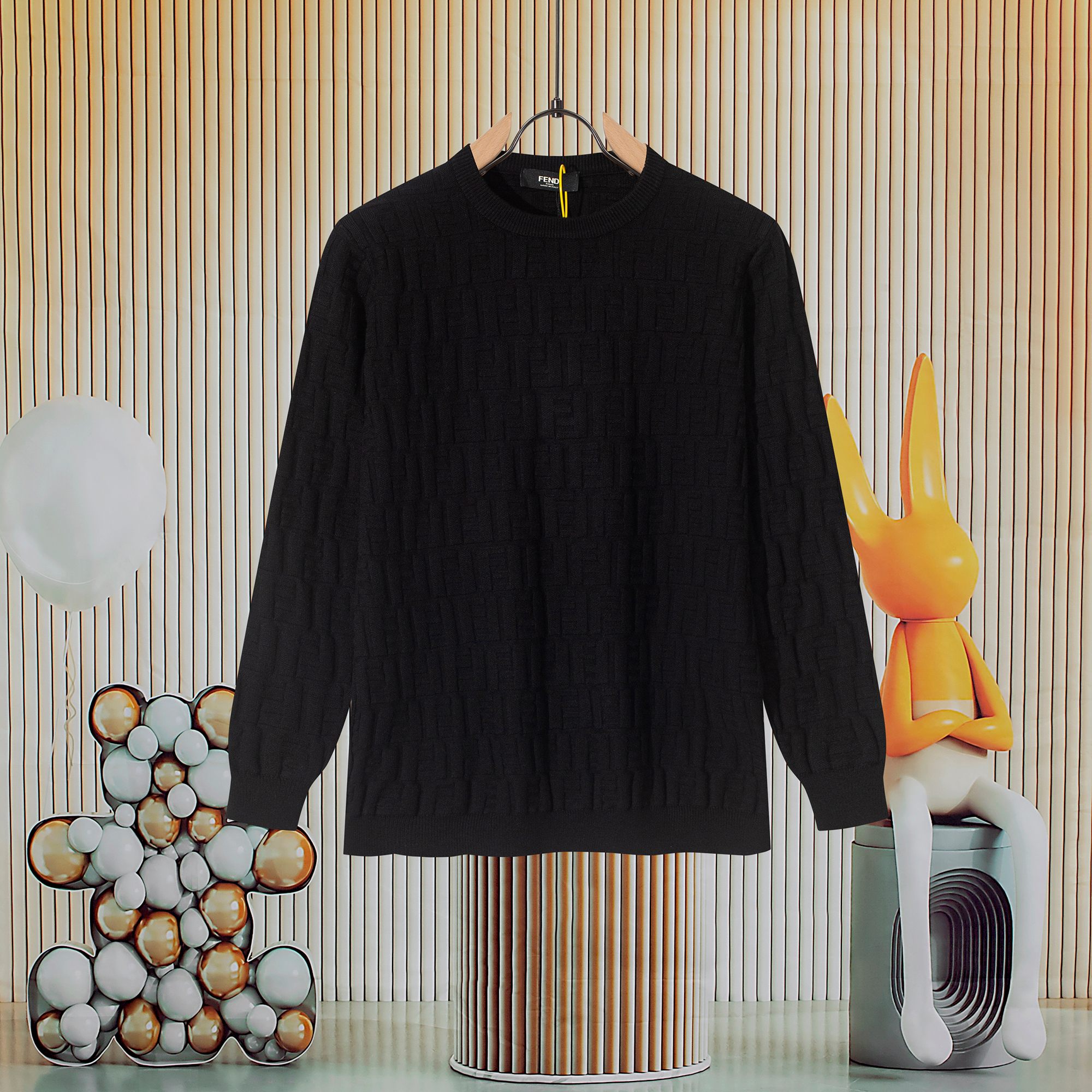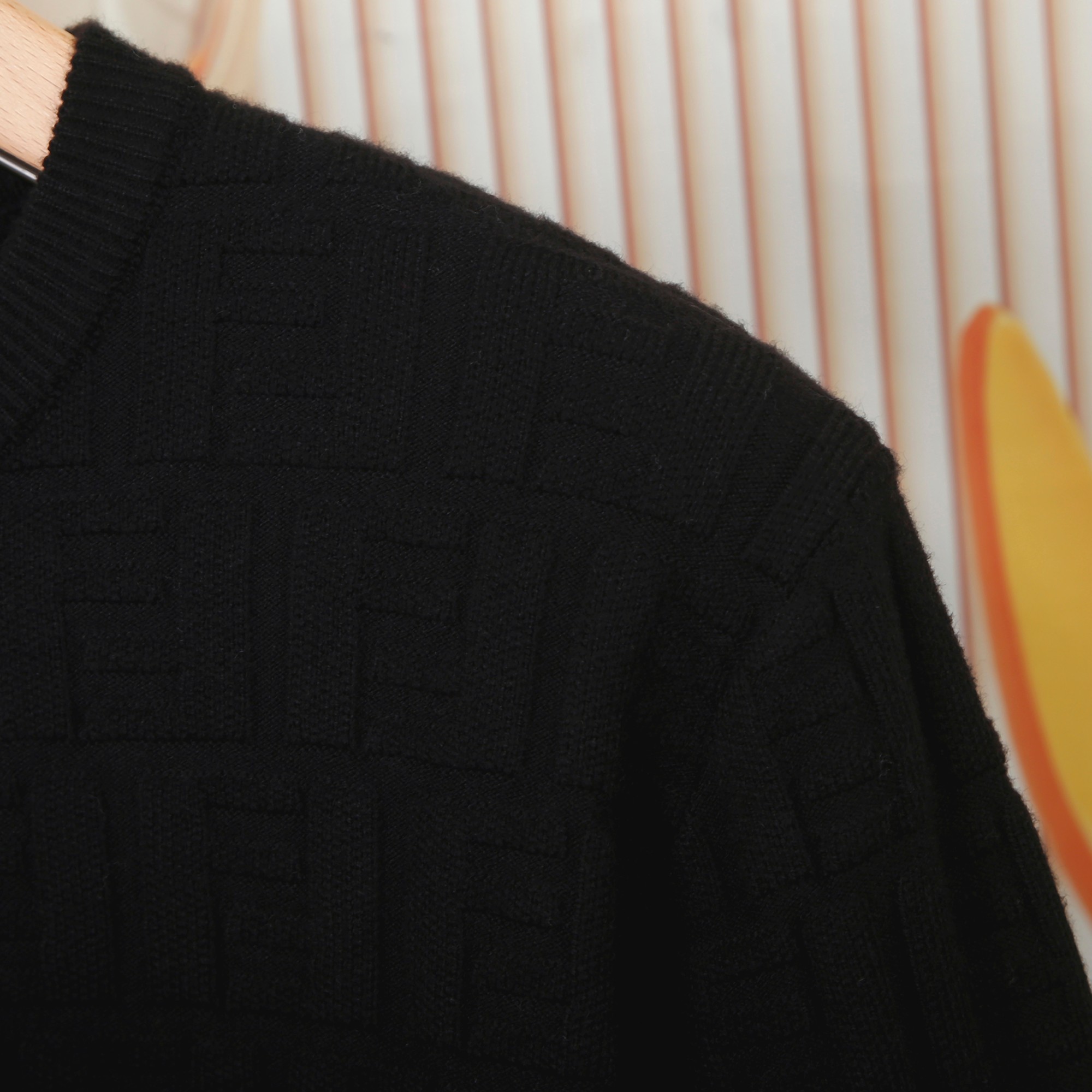 New hit FENDI knit sweater, exclusive new design with unique double F jacquard logo, distinct and raised. Really great. Easy to pair with anything, very fashionable. Workmanship and details are 1:1 synchronized with the official website. Absolutely pilling-free, non-irritating, super comfortable to touch. The fit is especially comfortable, looks very stylish, color matching is beautiful, workmanship is extremely detailed. Highly recommended. Quality can be compared to the market, not afraid of comparison.