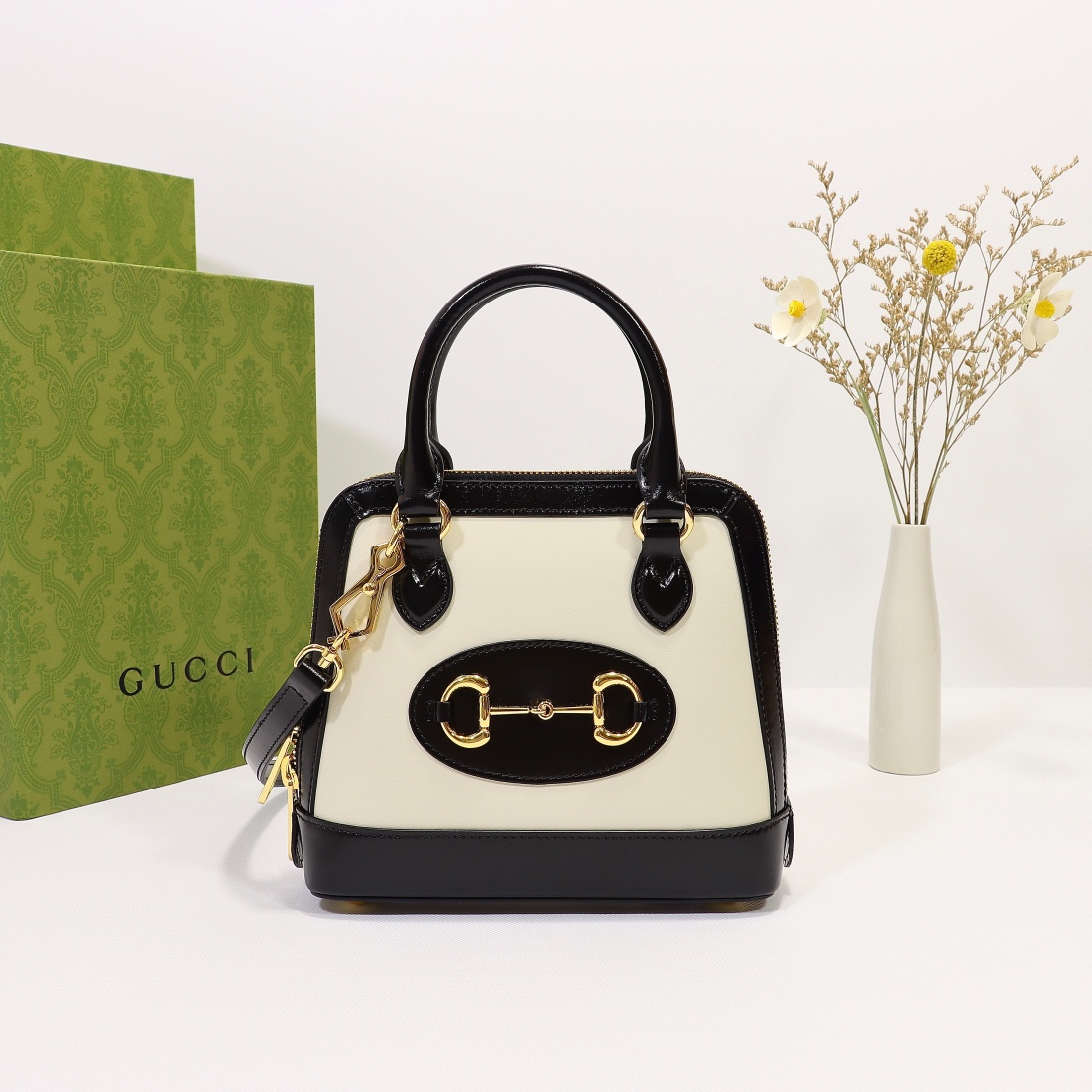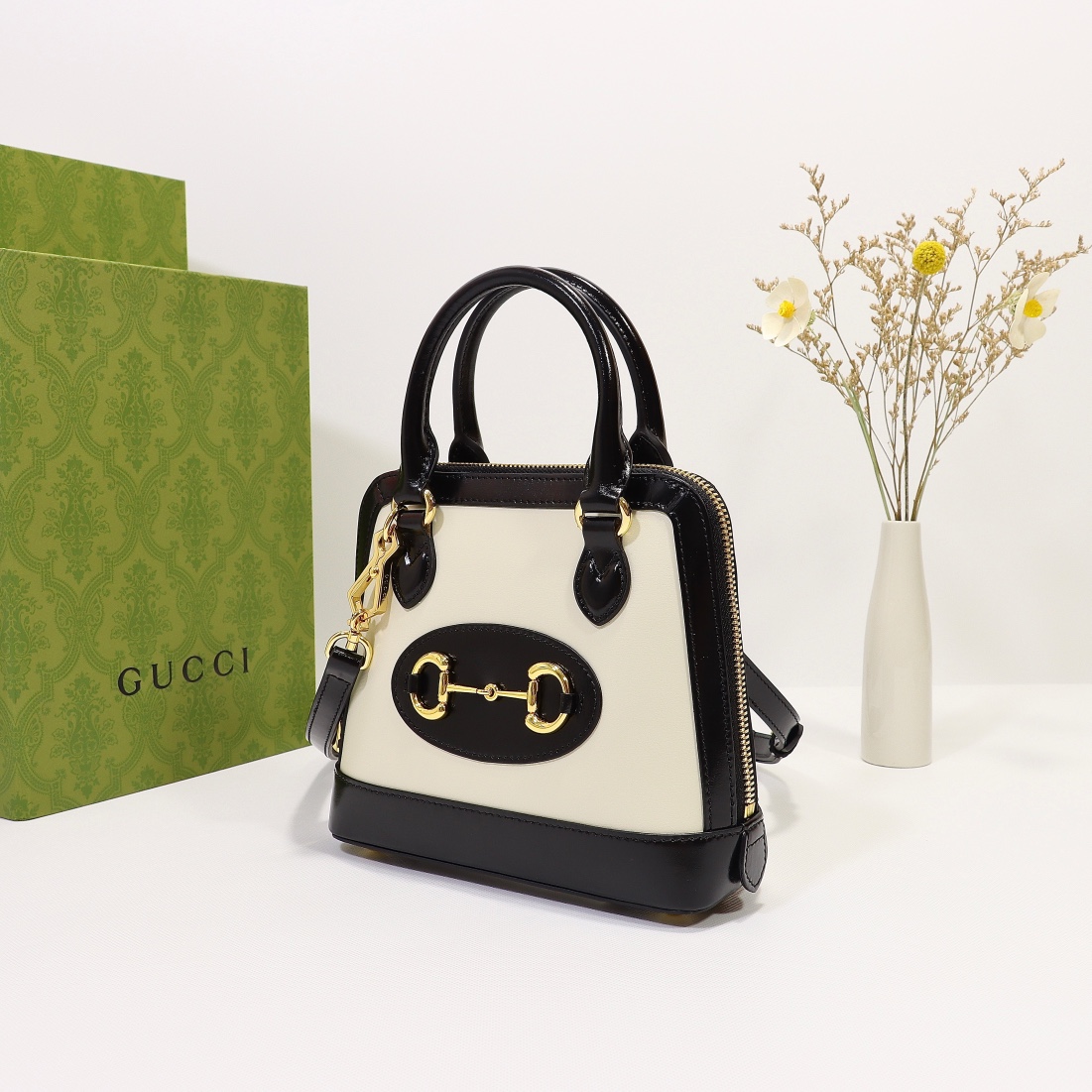 Counter quality, original factory leather, style number 640716 white. Dimensions: width 20 x height 19.5 x side width 7.5. Ready stock available!