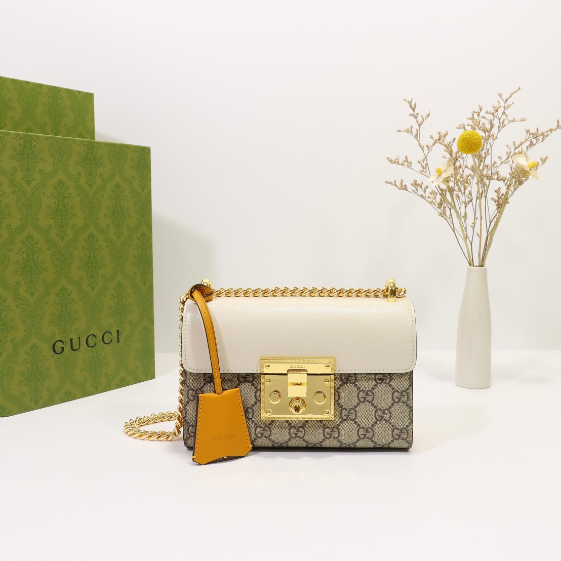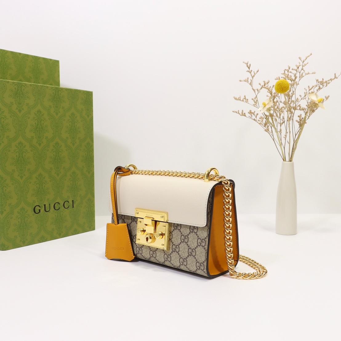 Wholesale 320, counter quality, original factory leather, style number 409487 yellow white. Dimensions: width 20.5 x height 13 x side width 7.5. Ready stock available!