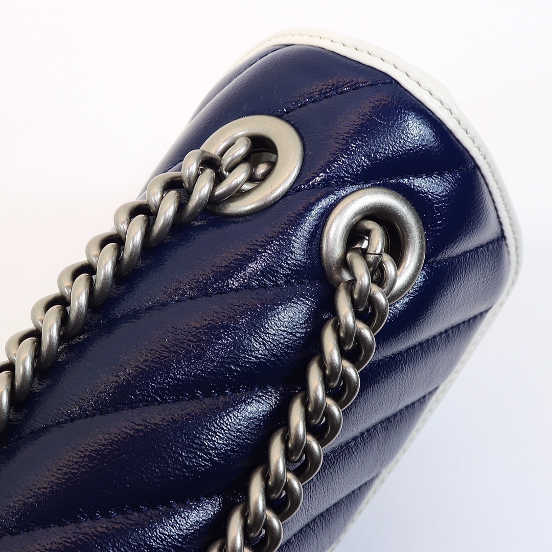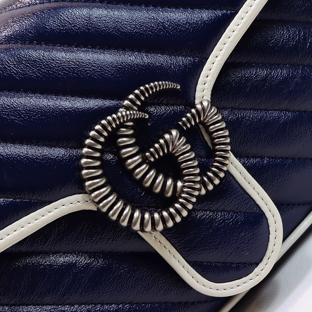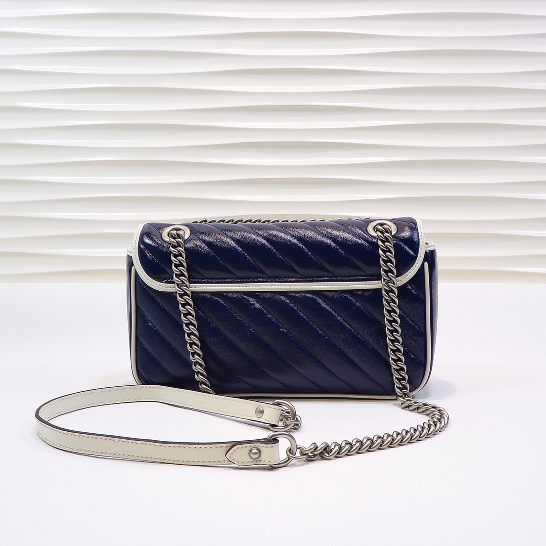 High-quality, genuine leather, style number 443497 blue and white. Dimensions: width 26 x height 15 x side width 7. Ready stock available!
