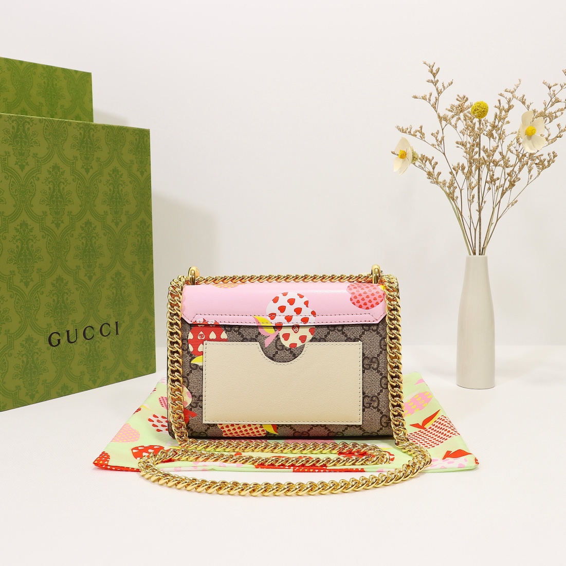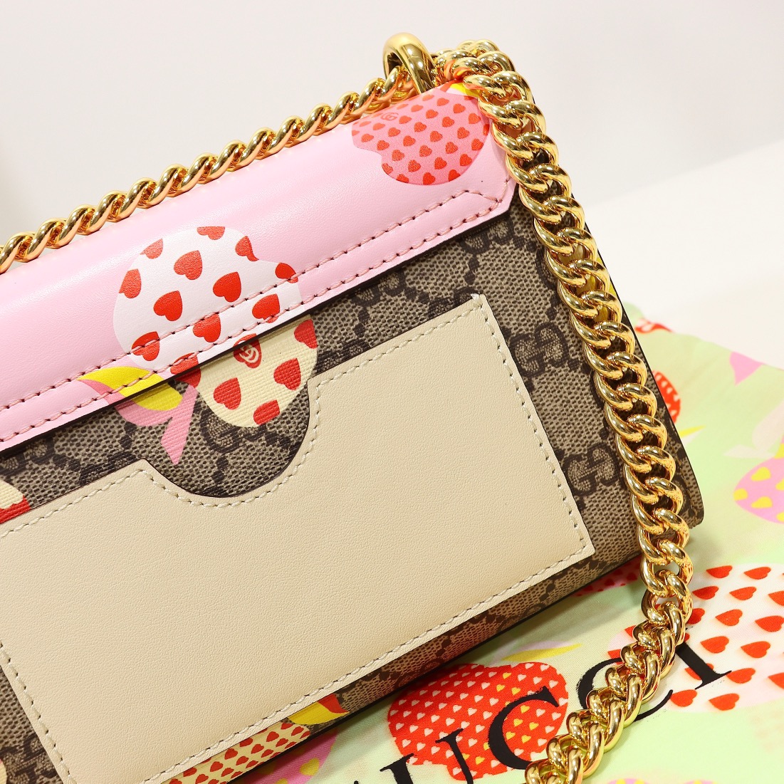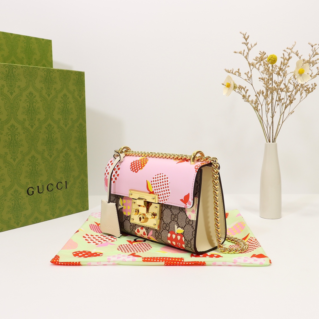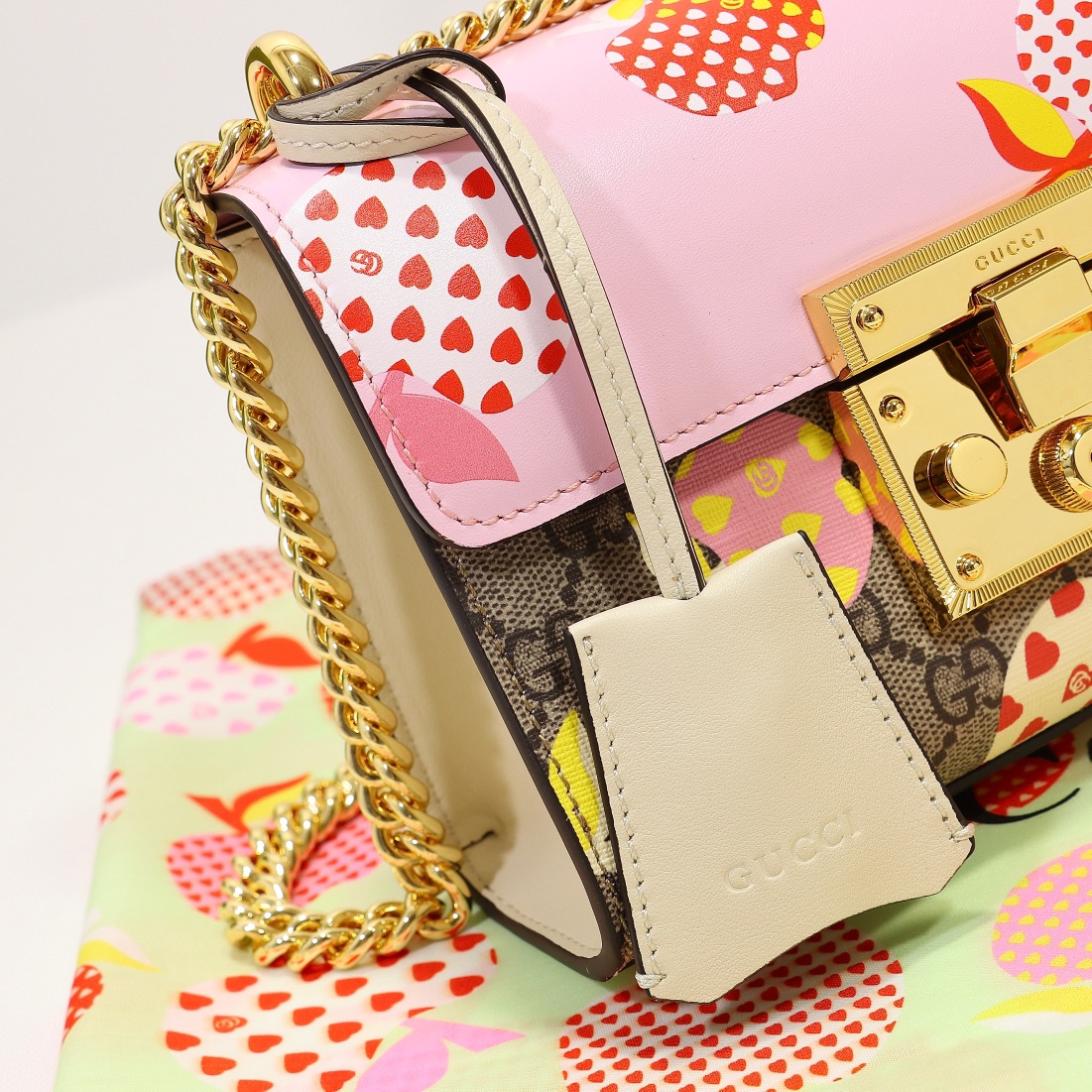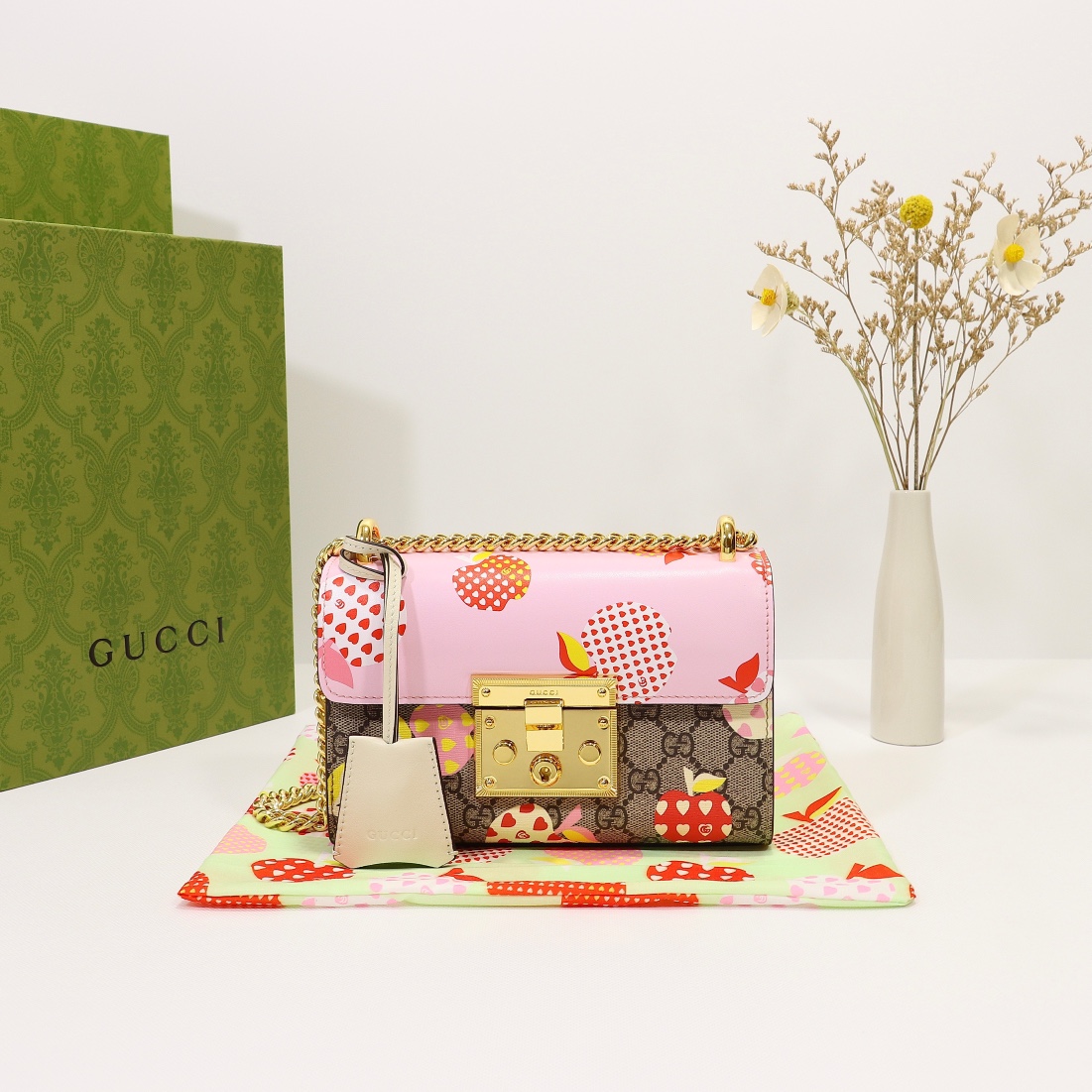 Batch 340, counter quality, original factory leather, style number 409487 pink apple. Dimensions: width 20 x height 12 x side width 8. Stock available for shipment!