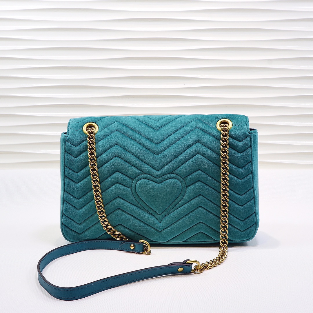 Batch 400, counter quality, top original single, physical shooting, style number 443496 green velvet. Size: 31x19x7. Spot goods shipment!