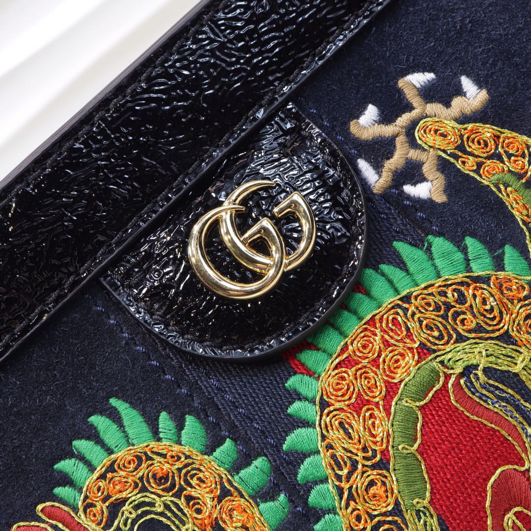 Batch 500, counter quality, top original single item, actual product photographed, style number 503877, blue sandblasted embroidered dragon. Size: 26x17.5x8. Ready stock available for shipment!