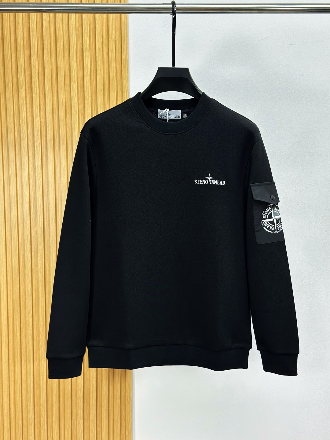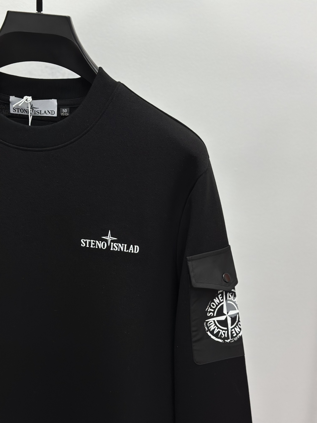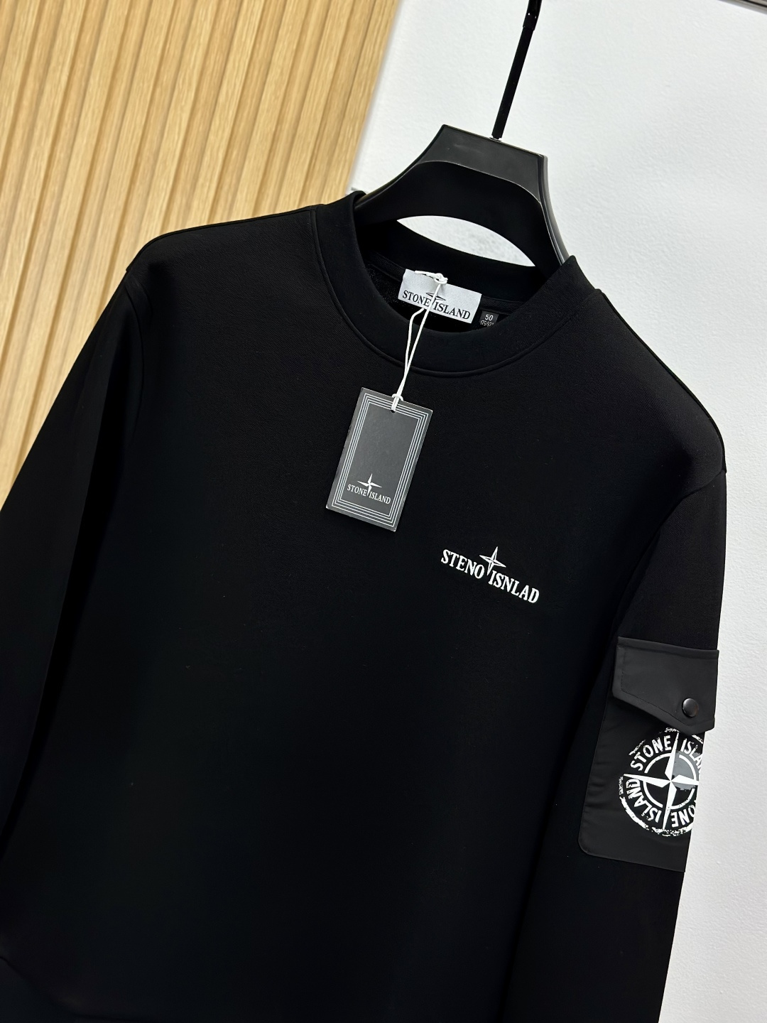 Stone Island 25FW black & white hoodie. Classic embroidered logo. Imported 400g air-layer cotton, warm & breathable. Sizes: M-3XL.