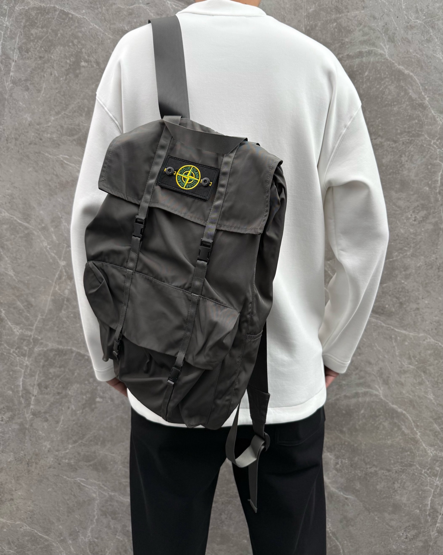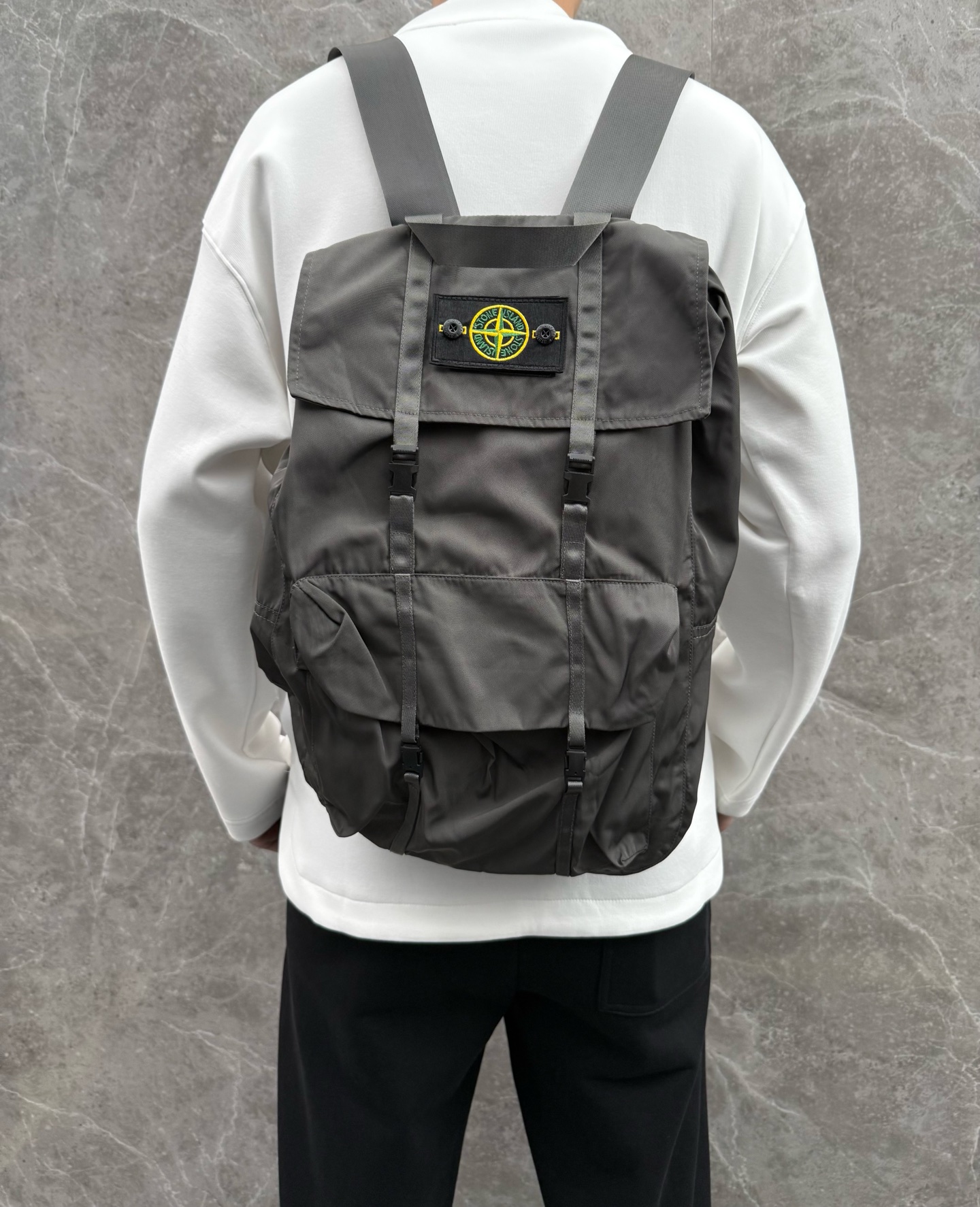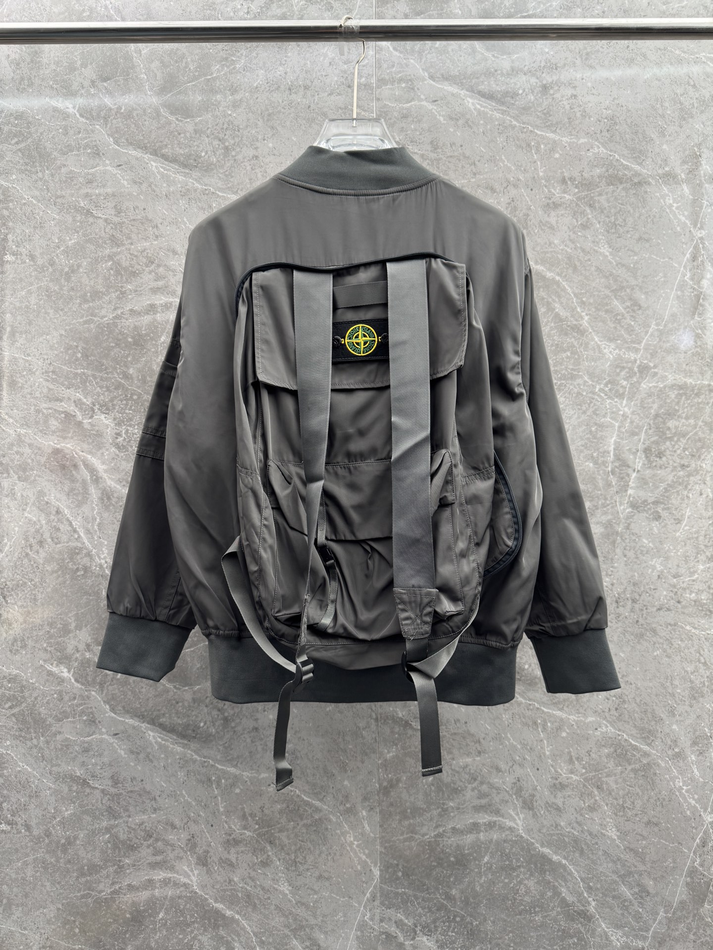 Stone Island latest explorer series jacket with convertible backpack. Popular for mountaineering. Imported high-end fabric, new logo design. Workwear style, clean cut. Sizes M-XXL.
