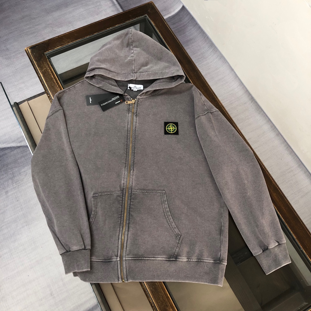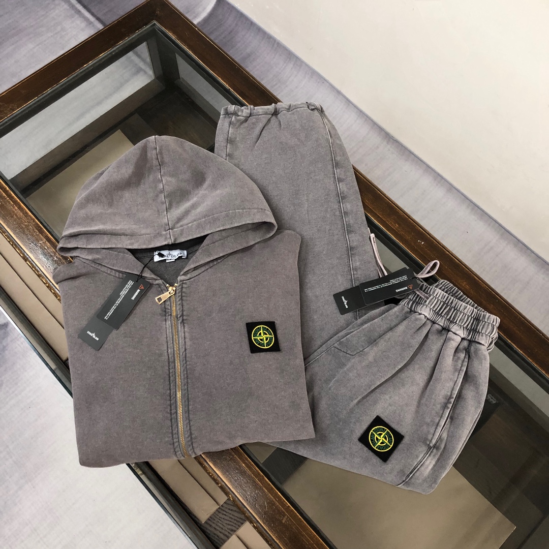 Stone Island 2025 early autumn couples hoodie & straight-leg pants set. Custom fabric, vintage wash, embroidered logo. Comfortable & breathable. Available in S-XXL.